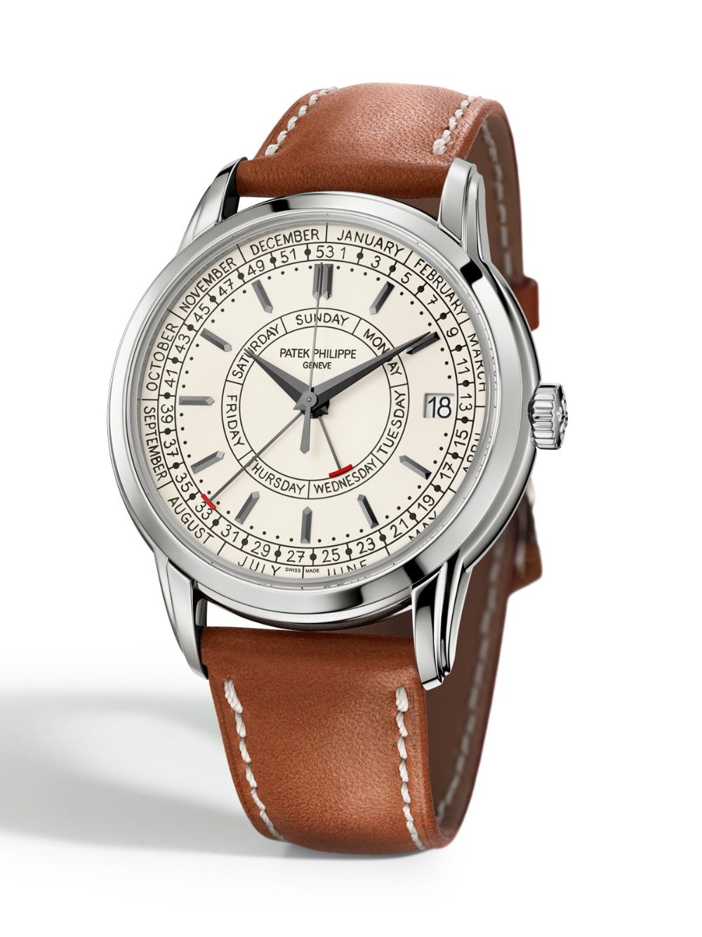 Il Patek Philippe Complicazioni Ref. 5212A introduce una nuova funzionalità nel mondo dell’orologeria: il calendario settimanale. Questo meccanismo semi-integrato indica il giorno della settimana, la data e il numero della settimana corrente, un dettaglio estremamente utile per i professionisti moderni. Racchiuso in una cassa in acciaio, questo Calatrava Settimanale è alimentato dal calibro automatico 26-330 S C J SE, che offre prestazioni ottimizzate. Il quadrante opalino argenté si distingue per il carattere unico delle cifre e delle lettere, che riproducono una grafia manoscritta, conferendo all`orologio un fascino distintivo e raffinato. Il cinturino in pelle di vitello bruno chiaro completa il design di questo segnatempo, perfetto per chi desidera coniugare stile e praticità.