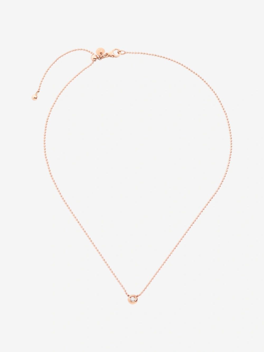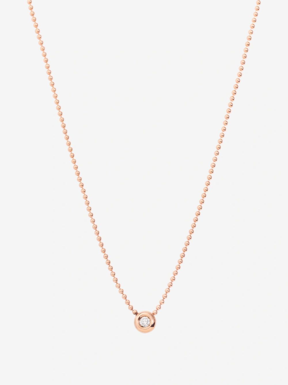 Choker bollicine in oro rosa 9K con 1 diamante bianco (ct 0.06) e chiusura con slider in oro rosa 9K. Piastrina in oro rosa 9K.