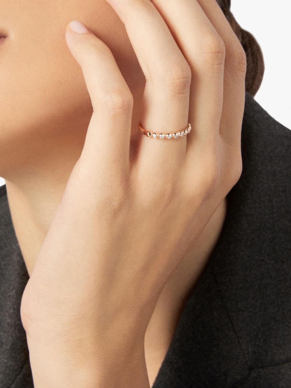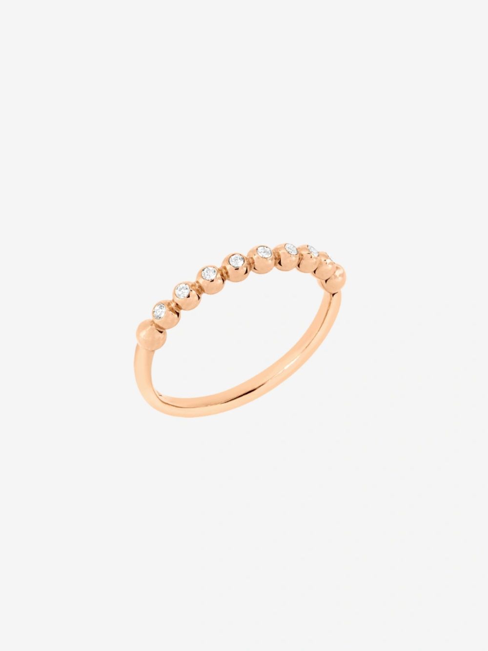 Anello bollicine in oro rosa 9K con 8 diamanti bianchi (ct 0.06).
