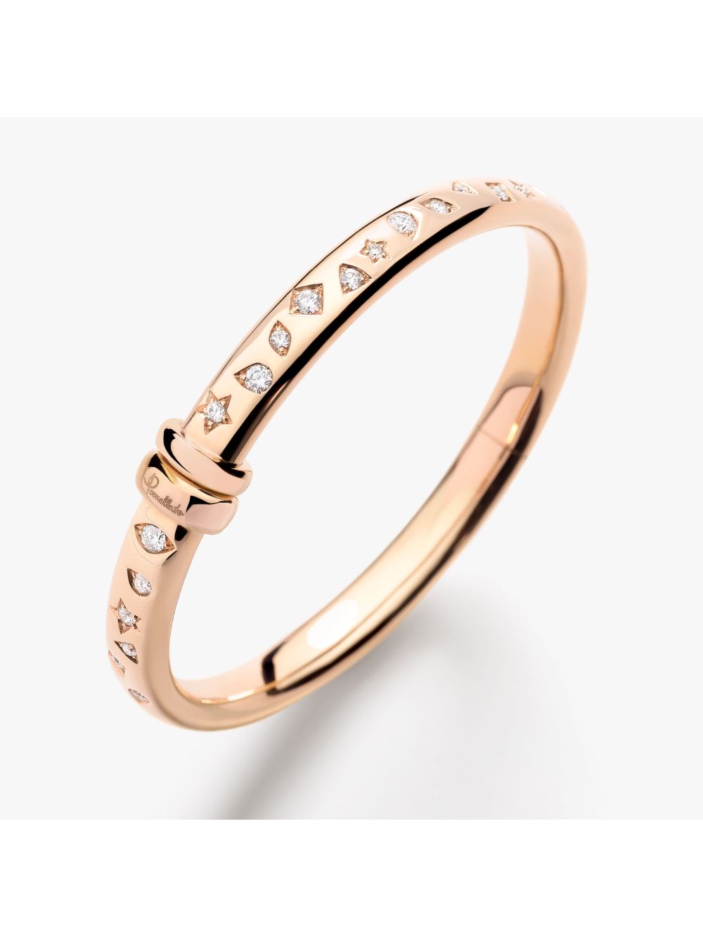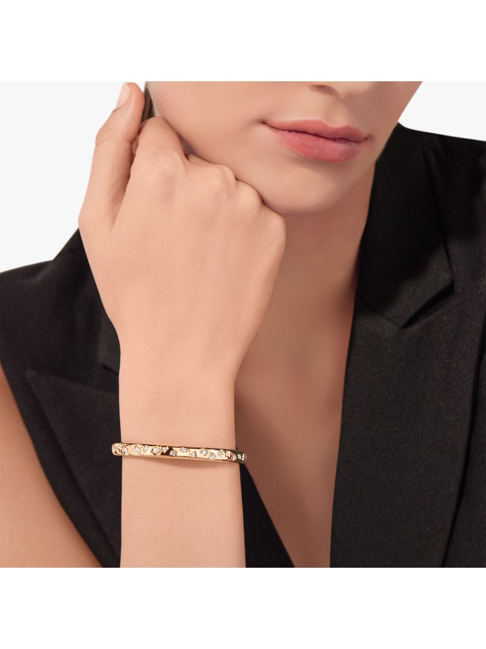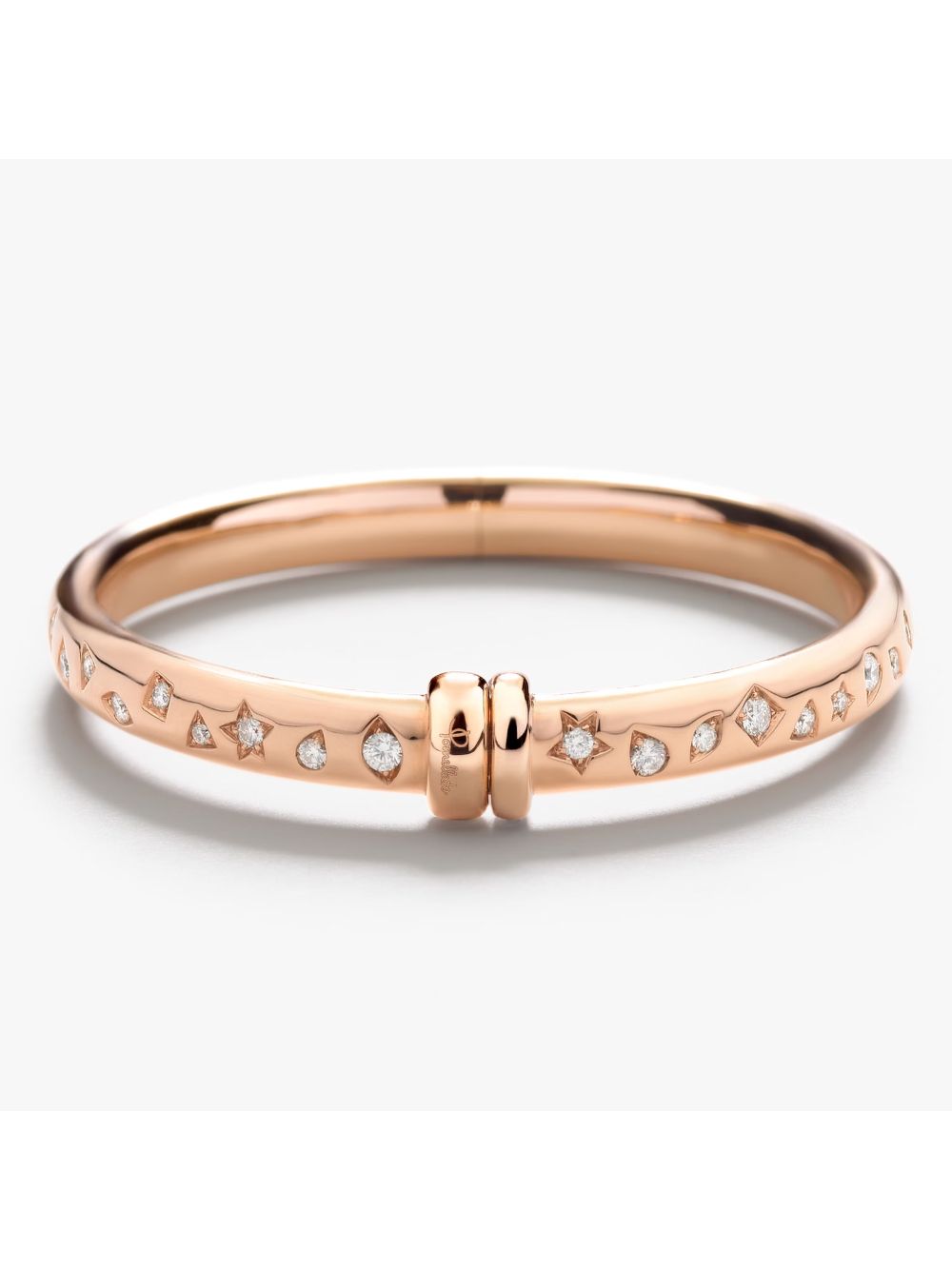 La collezione Iconica di Pomellato è un omaggio alla ricca tradizione orafa della Maison. I gioielli Iconica, frutto di una lavorazione artigianale, sono un’autentica opera d’arte per gli appassionati di oreficeria. L’elegante parure di punta si arricchisce di un nuovo bracciale Iconica: realizzato in oro rosa, è semplice da chiudere ed è impreziosito da numerosi diamanti incastonati a mano e intagliati a forma di stelle, triangoli, gocce, rombi e quadrati.