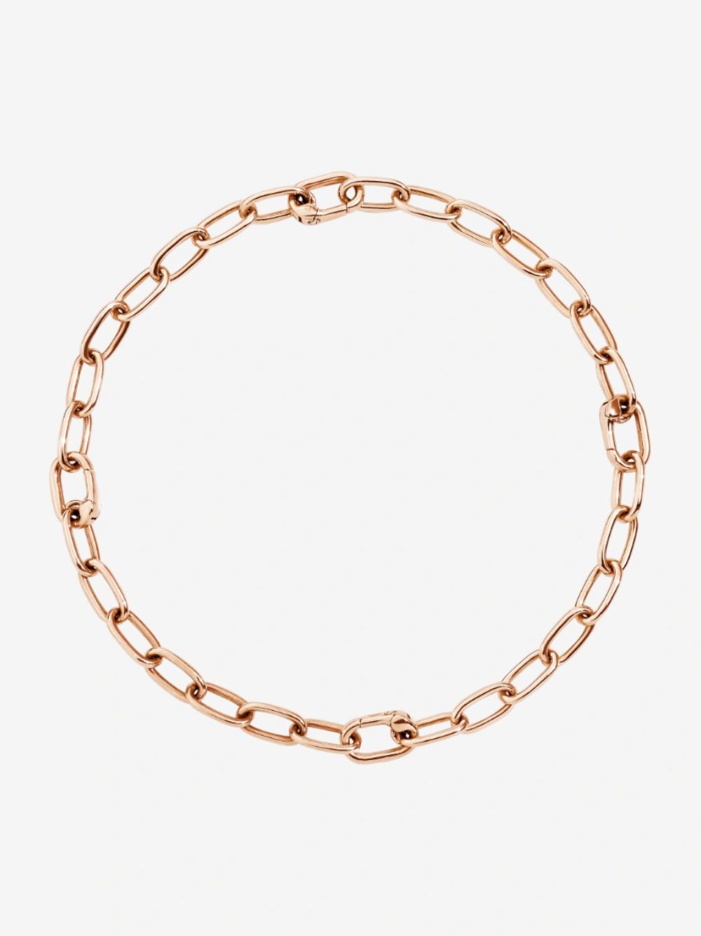 Il bracciale Essentials di Dodo è composto da maglie apribili in argento dorato con dettagli in oro rosa 18K, rendendolo elegante e versatile. Questo design raffinato e contemporaneo è ideale per aggiungere charm e creare un look personalizzato, perfetto per ogni occasione.