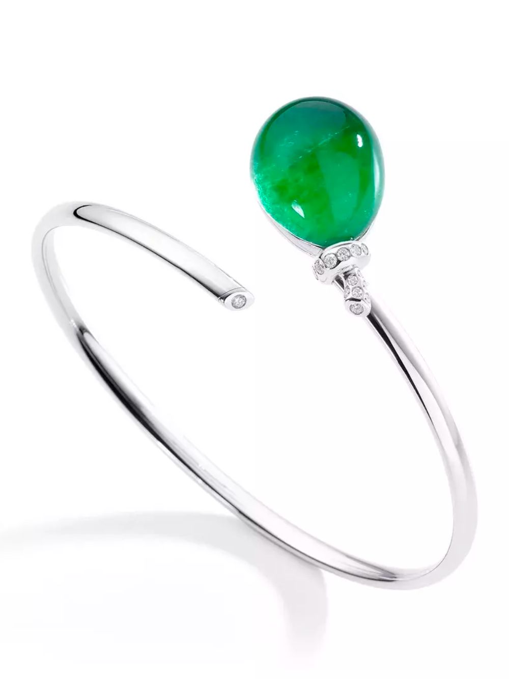 Vhernier, bracciale Palloncino, cod. MOO786BR417. Oro bianco rodiato, giada, cristallo di rocca e 17 diamanti (0,15 ct). Eleganza sofisticata e design esclusivo per un gioiello iconico.