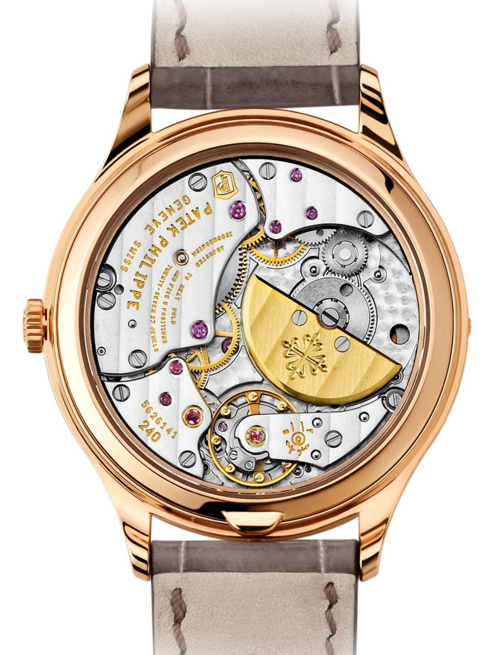 Il Patek Philippe Grandi Complicazioni Ref. 7140R rappresenta l`eccellenza della maison nel creare complicazioni sofisticate, avvolte in un design raffinato e femminile. Questo calendario perpetuo, con la sua meccanica complessa capace di memorizzare la lunghezza dei mesi e gli anni bisestili, è alimentato dal calibro ultrapiatto 240 Q. La cassa in oro rosa, impreziosita da una lunetta con 68 diamanti scintillanti, accoglie un quadrante bianco argentato opalescente con indici in oro applicati, espressione di purezza e luminosità . Il cinturino in alligatore lucido grigio visone, con fibbia decorata da 27 diamanti, aggiunge una nota di lusso discreto, mentre il cinturino aggiuntivo in color porpora reale offre una variante elegante. Un orologio creato per la donna moderna che desidera un tocco di femminilità e alta orologeria.