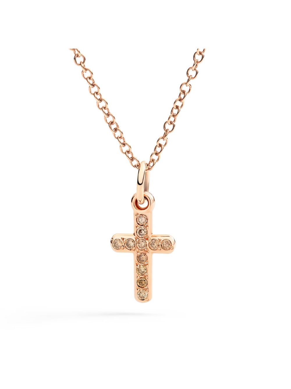 Charm Croce Oro Rosa 9K Diamanti Brown