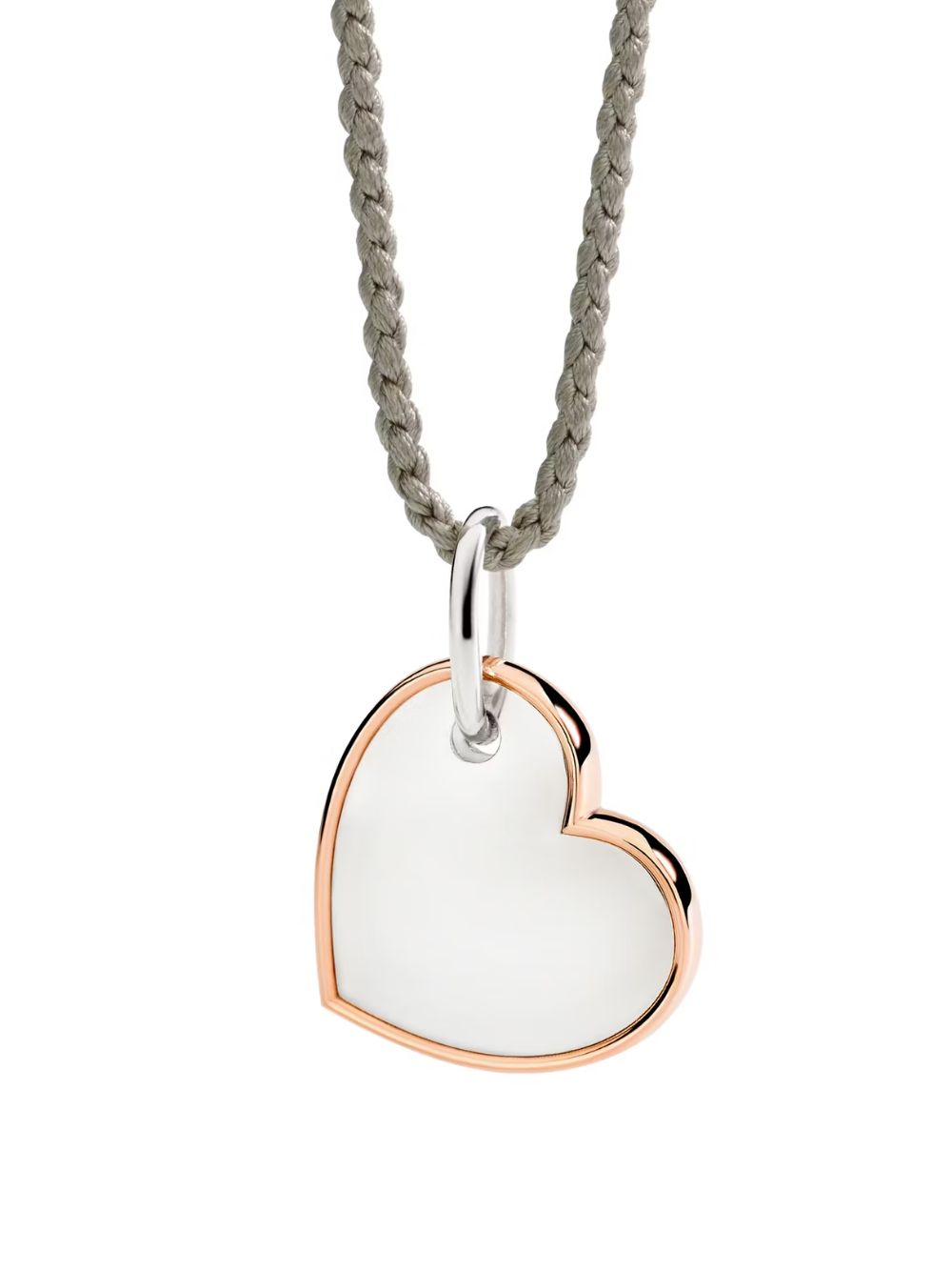 Ciondolo XL Cuore in argento 925 e dettaglio profilo in oro rosa 9K. Cordino in seta torchon incluso.