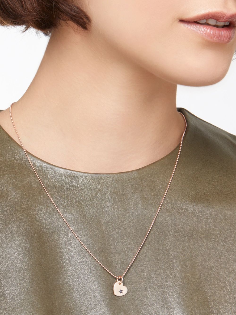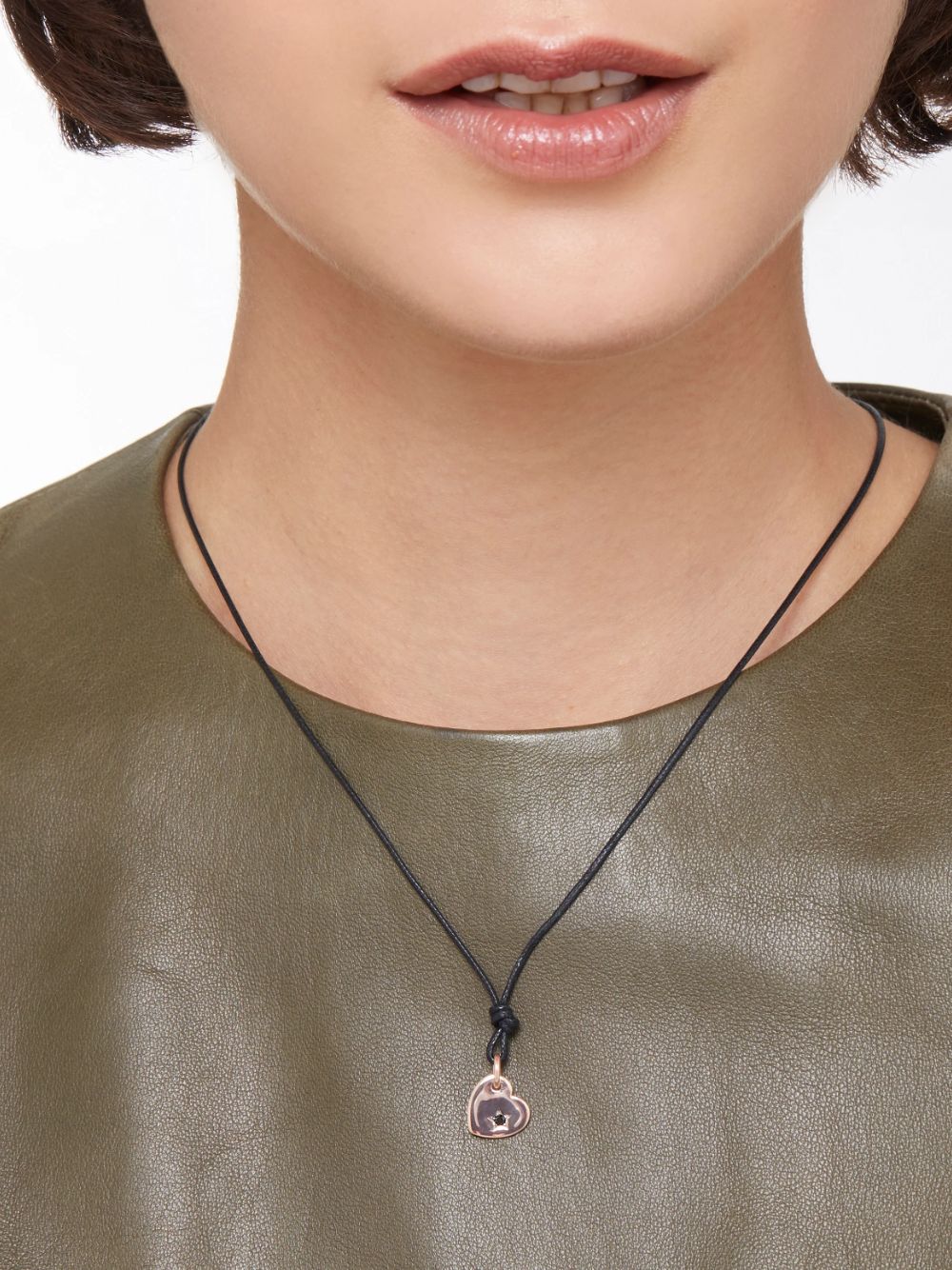 Ciondolo cuore in oro rosa 9K con 1 diamante black trattato (ct 0.03). Cordino nero incluso.