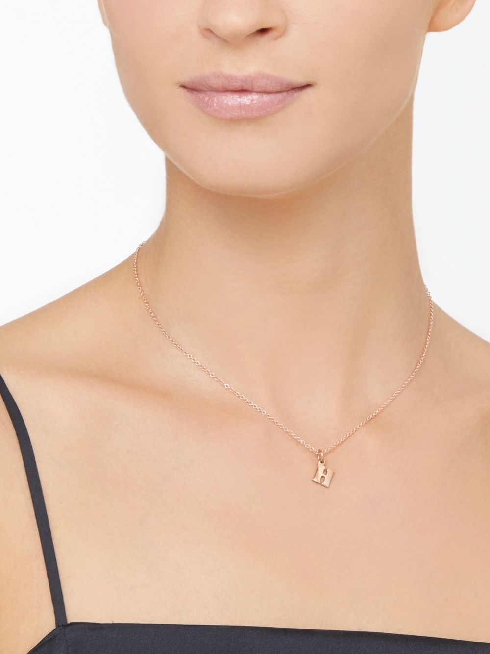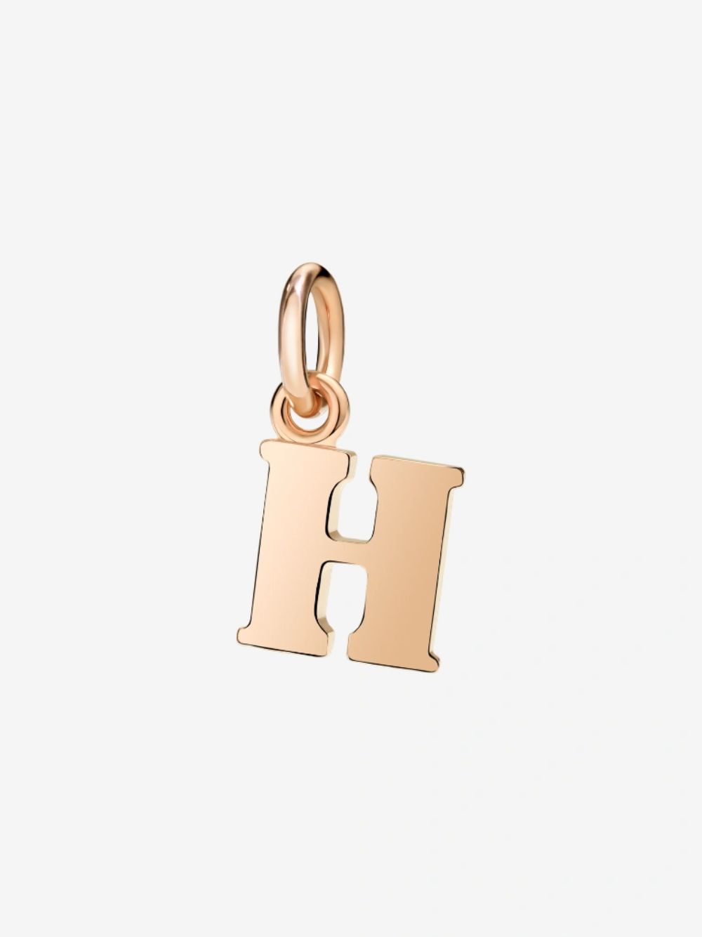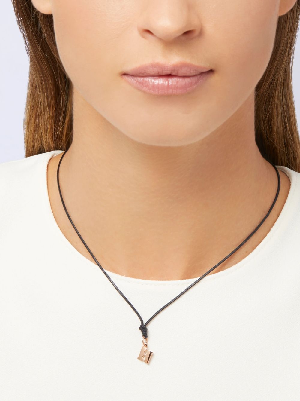 Ciondolo lettera H in oro rosa 9K – modello grande. Cordino nero incluso.