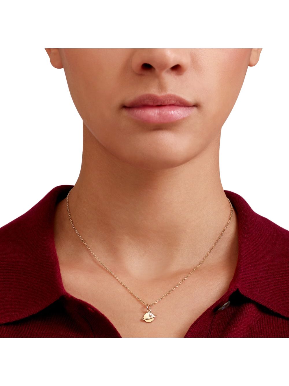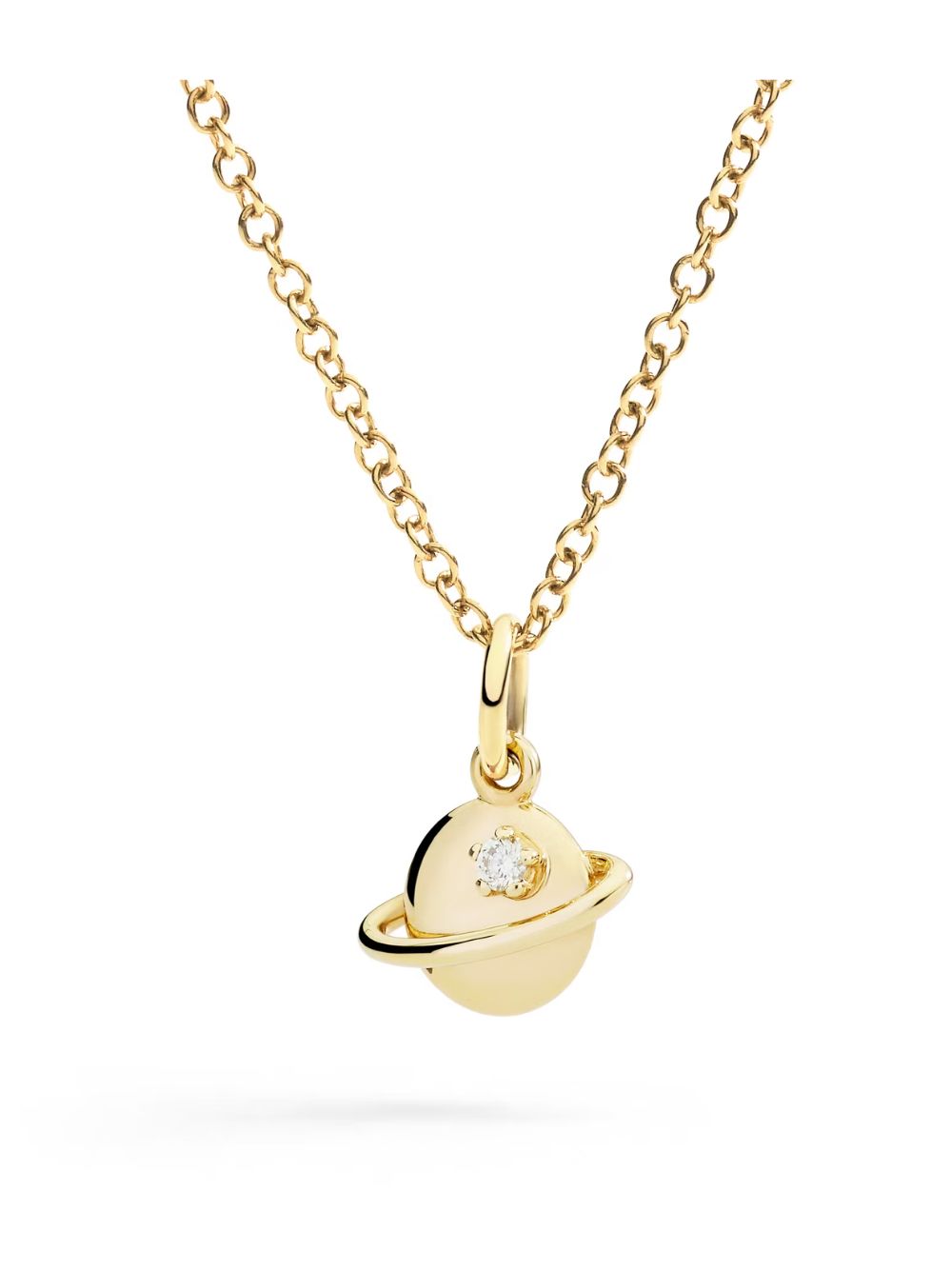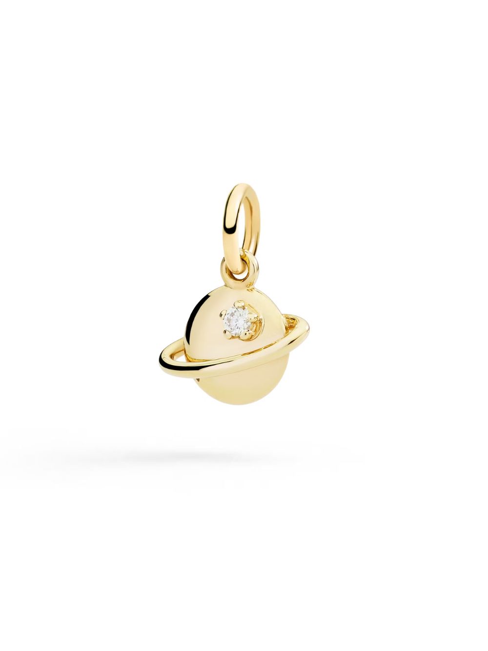 Ciondolo pianeta in oro giallo 9K con 1 diamante bianco (ct 0,03). Cordino nero incluso.