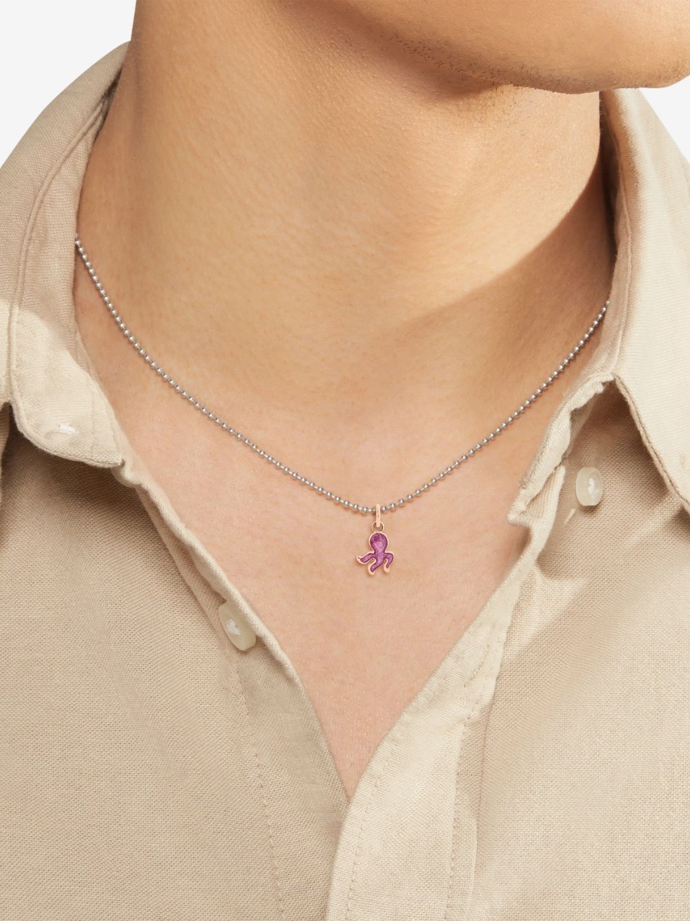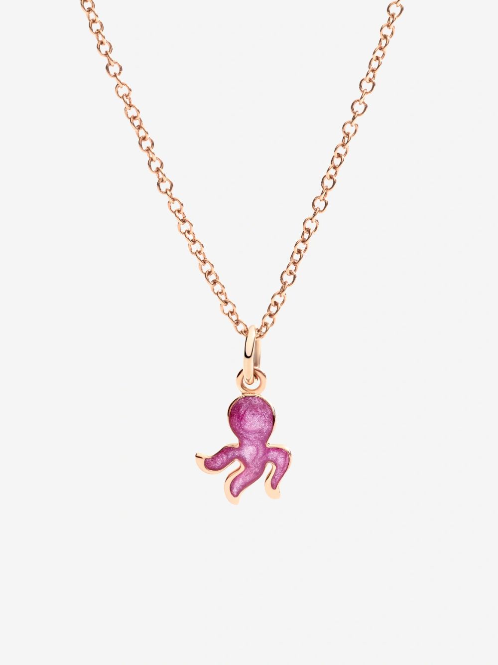 Charm polpo DoDo in oro rosa 9k con smalto viola chiaro effetto madreperla. Collezione Essentials. SKU: DMC4009_OCTOS_EPV9R_0. Simbolo di intelligenza e adattabilità , perfetto per personalizzare collane o bracciali.