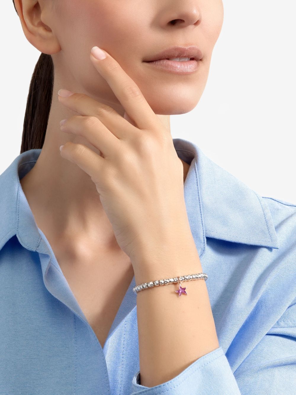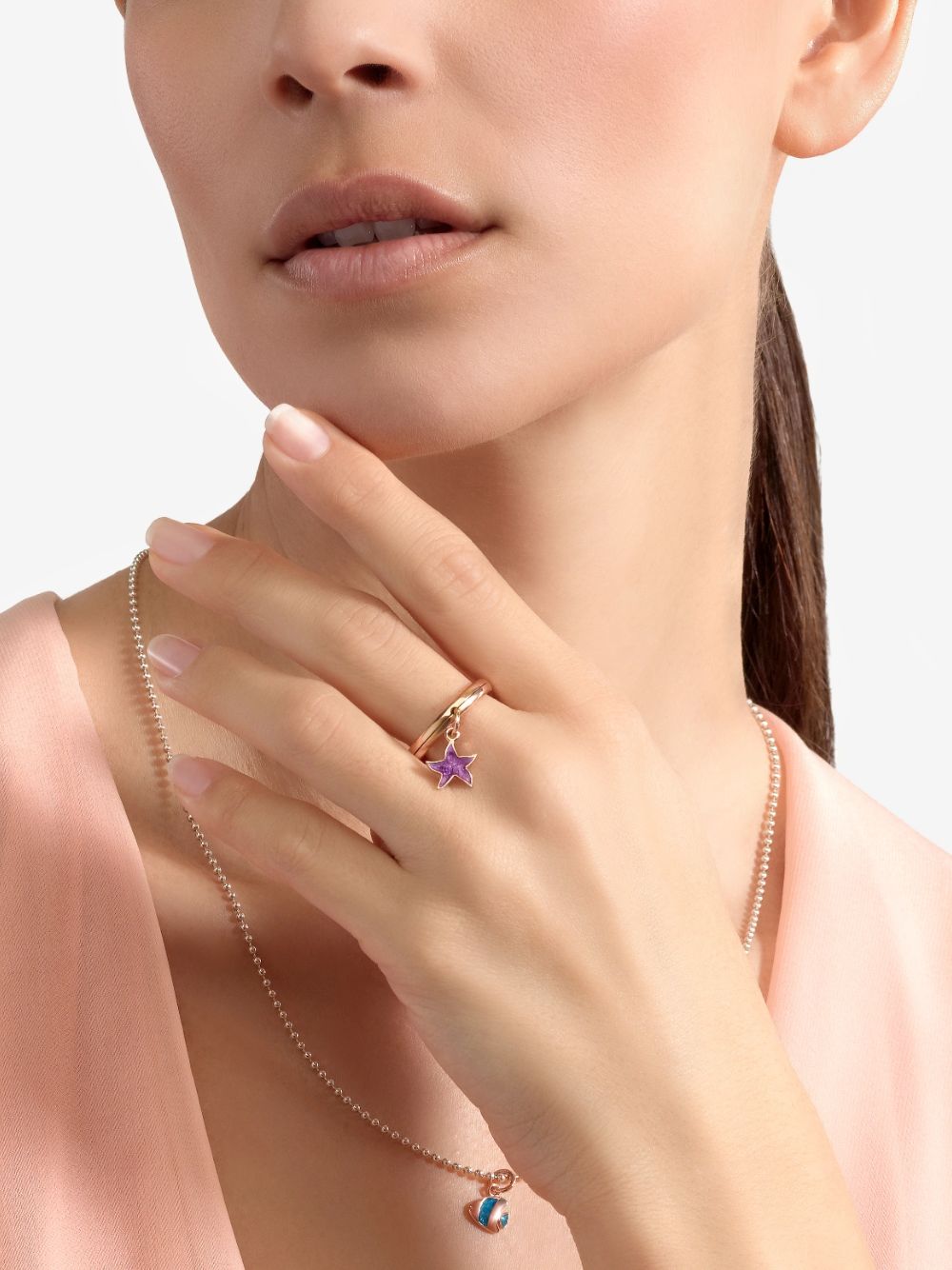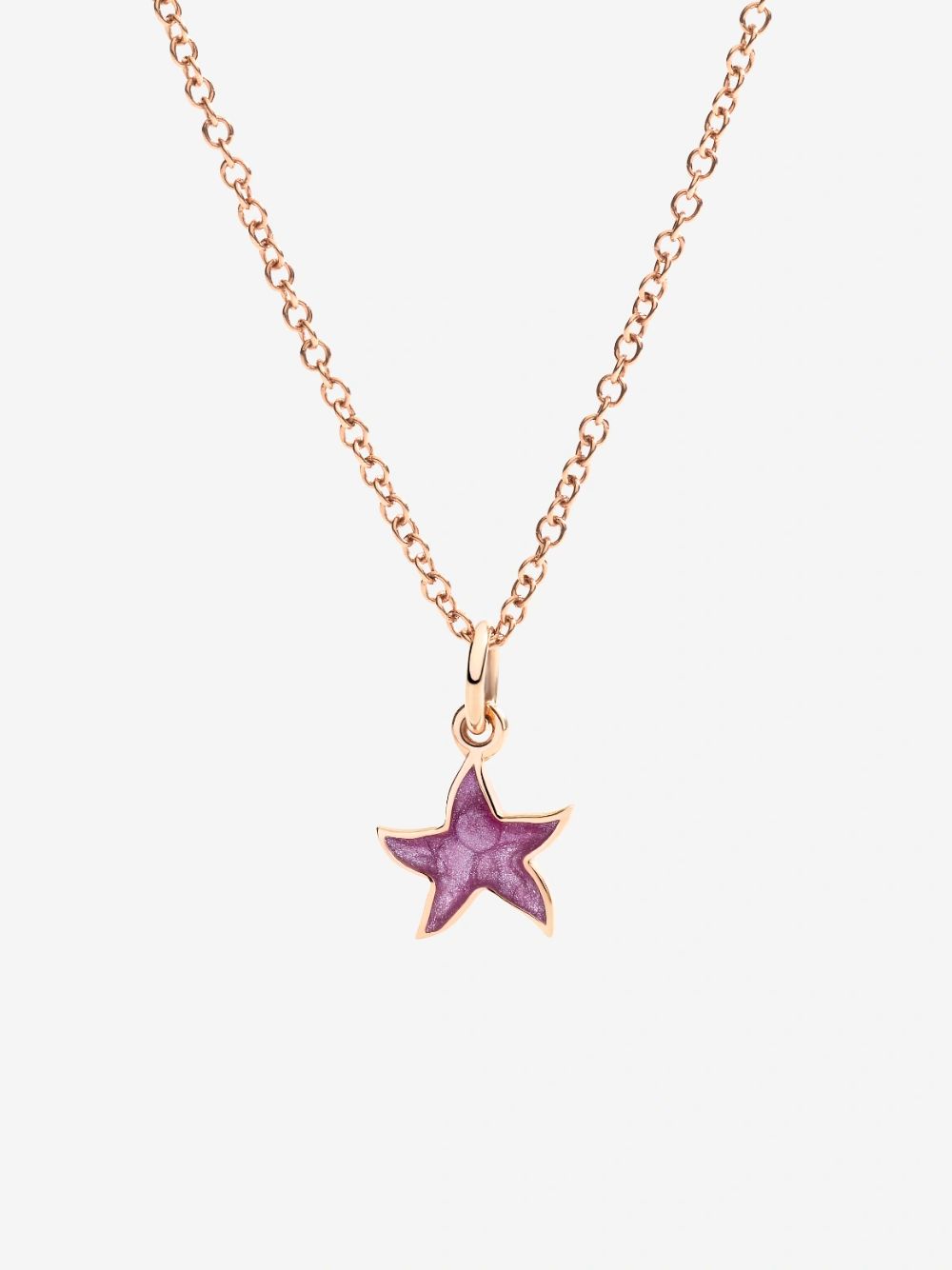Il charm stellina di Dodo è realizzato in oro rosa 9K ed è decorato con smalto viola che riproduce un effetto madreperla. Questo gioiello unico e luminoso è perfetto per personalizzare il tuo stile, aggiungendo un tocco di colore e brillantezza. Può essere indossato da solo o in combinazione con altri charm