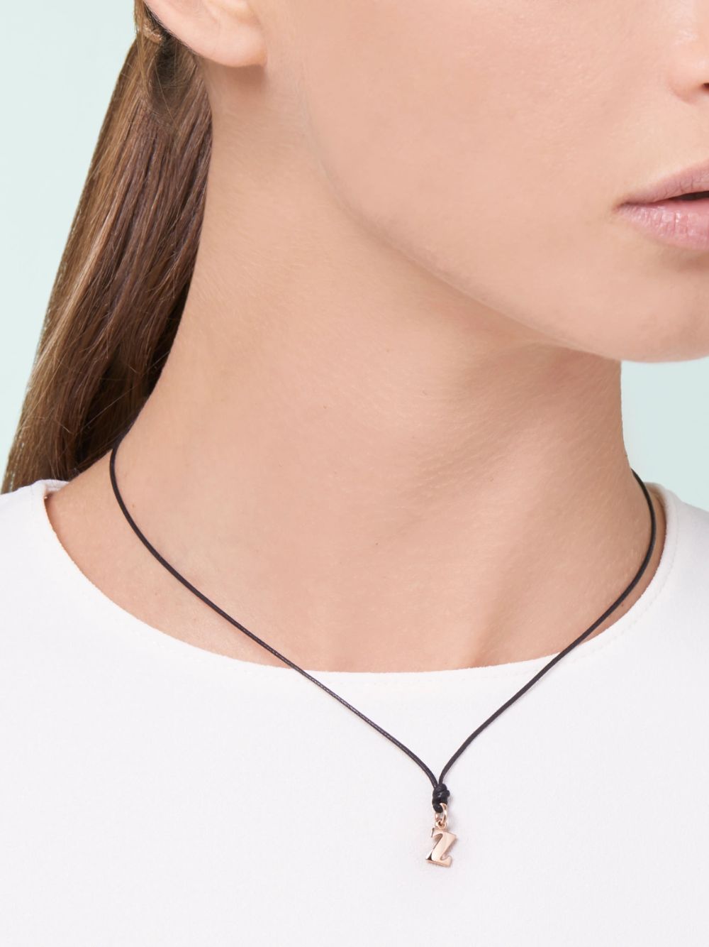 Ciondolo lettera Z in oro rosa 9K – modello grande. Cordino nero incluso.