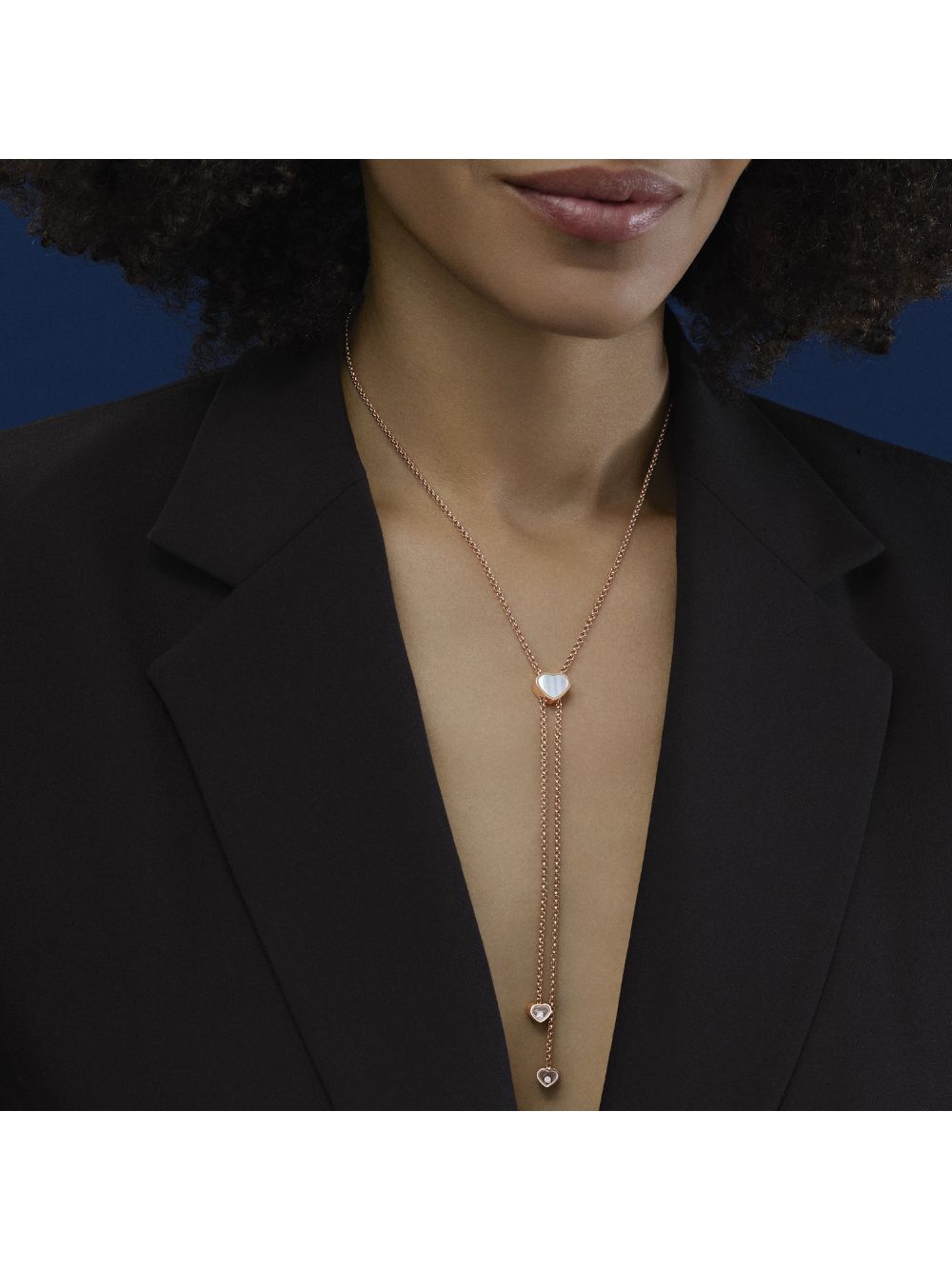 Collana cravatta, oro rosa etico, diamanti, madreperla