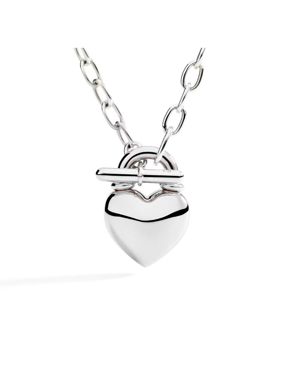 Collana Cuore in argento 925 con ciondolo bold e t-bar in argento 925.