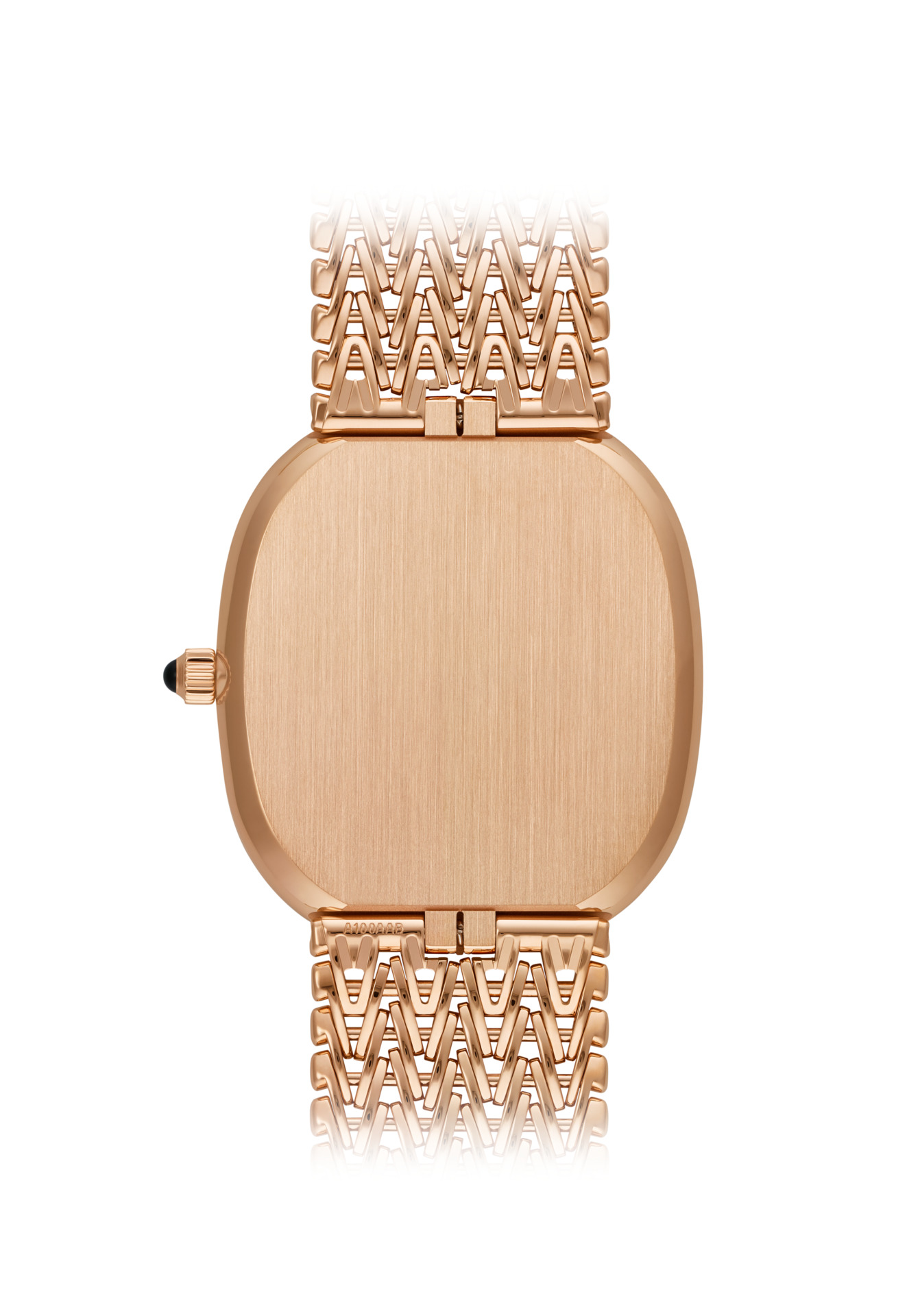 Il Patek Philippe Golden Ellipse Ref. 5738/1R è un tributo raffinato agli anni ’70, epoca in cui l’Ellipse d’Oro ha segnato una svolta nello stile orologiero. Questo modello in oro rosa, caratterizzato da una cassa armoniosa ispirata alla sezione aurea, è per la prima volta abbinato a un bracciale in metallo, composto da sottili file di maglie che ricordano i bracciali a catena dell’epoca. Il quadrante nero ebano soleil, arricchito da indici a bastone in oro rosa e sottili lancette tipo cheveu, riflette un’estetica raffinata e senza tempo. All’interno, il calibro ultrapiatto 240 a carica automatica garantisce precisione e affidabilità. Il bracciale, composto da 363 elementi montati a mano, si adatta con eleganza al polso, completando l’eleganza sofisticata di questo segnatempo.