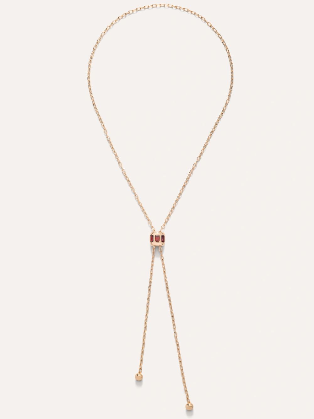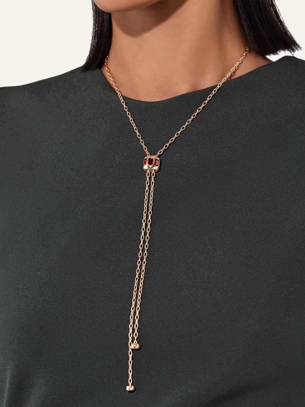 Il colore divampa sulle inconfondibili creazioni Iconica, un tributo appassionato all`arte orafa della tradizione milanese. Ispirata alle prime collezioni Bisanzio di Pomellato, la silhouette scultorea di Iconica abbraccia l`opulenza bizantina, reinterpretando con grazia e modernità un classico della gioielleria. L`oro perfettamente liscio si fonde in un`armonia poetica con le gemme dai colori vivaci, esaltato dalla maestria di Pomellato nel design e nell`artigianato. La collana lariat, con la sua catena aperta, è impreziosita da un fermaglio regolabile incastonato di gemme colorate. Questo raffinato sistema di chiusura scorrevole, interamente in oro, permette di indossare il gioiello in modi diversi, trasformando ogni volta la sua bellezza e offrendo una versatilità romantica e senza tempo.