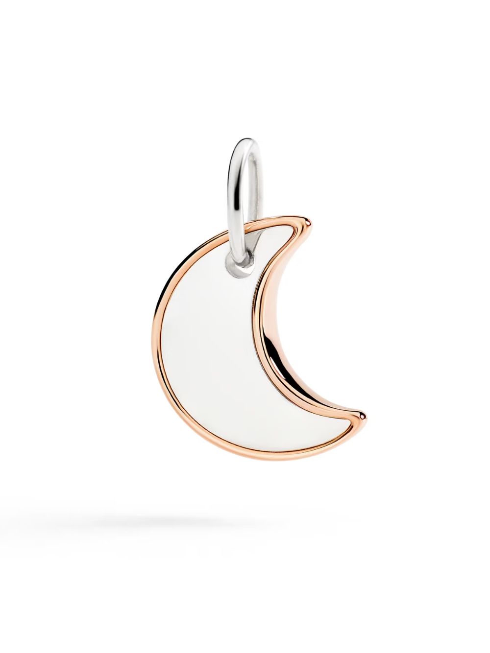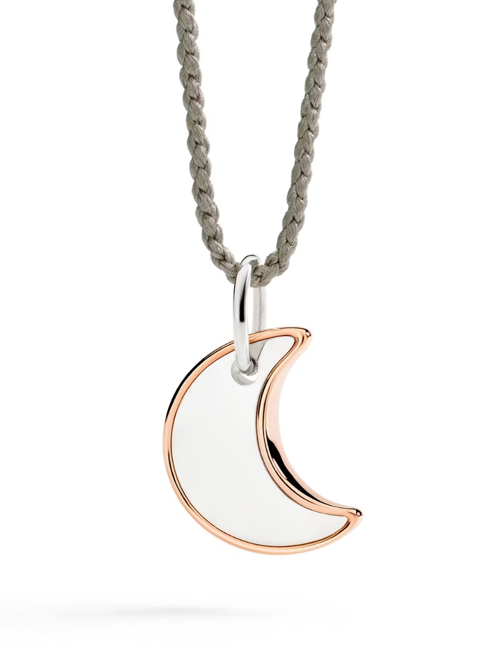 Ciondolo XL Luna in argento 925 e dettaglio profilo in oro rosa 9K. Cordino in seta torchon incluso.