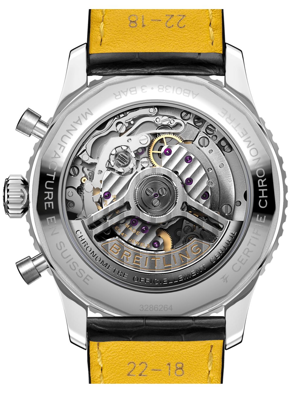 Orologio Breitling Navitimer con regolo calcolatore, cristallo bombato e quadranti blu, verde o rame. Iconico cronografo da pilota con logo AOPA a ore 12. Stile senza tempo, un must per aviatori e amanti del design.