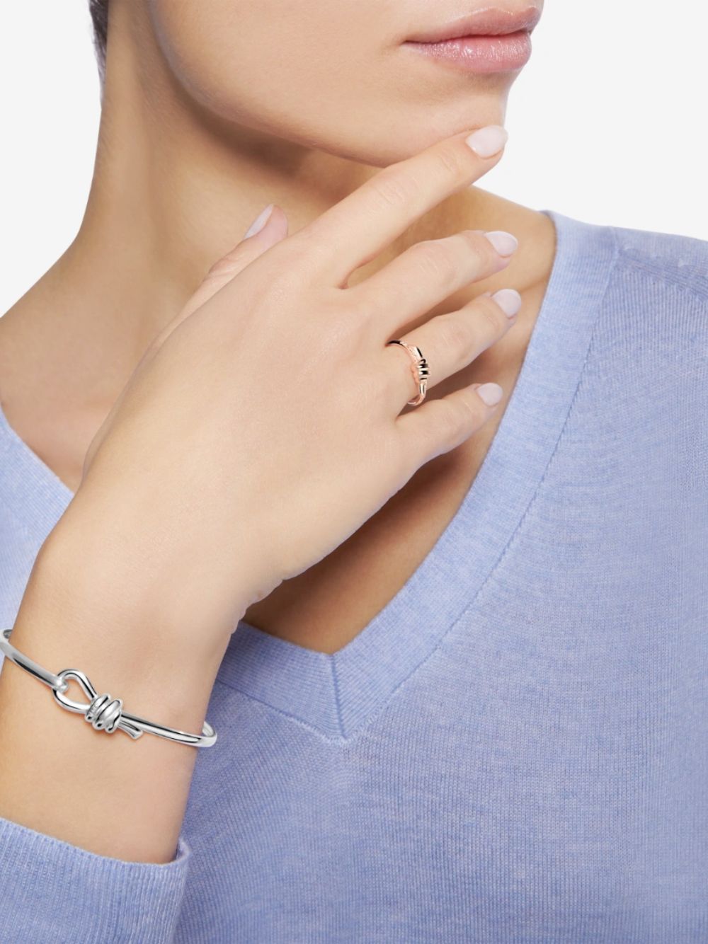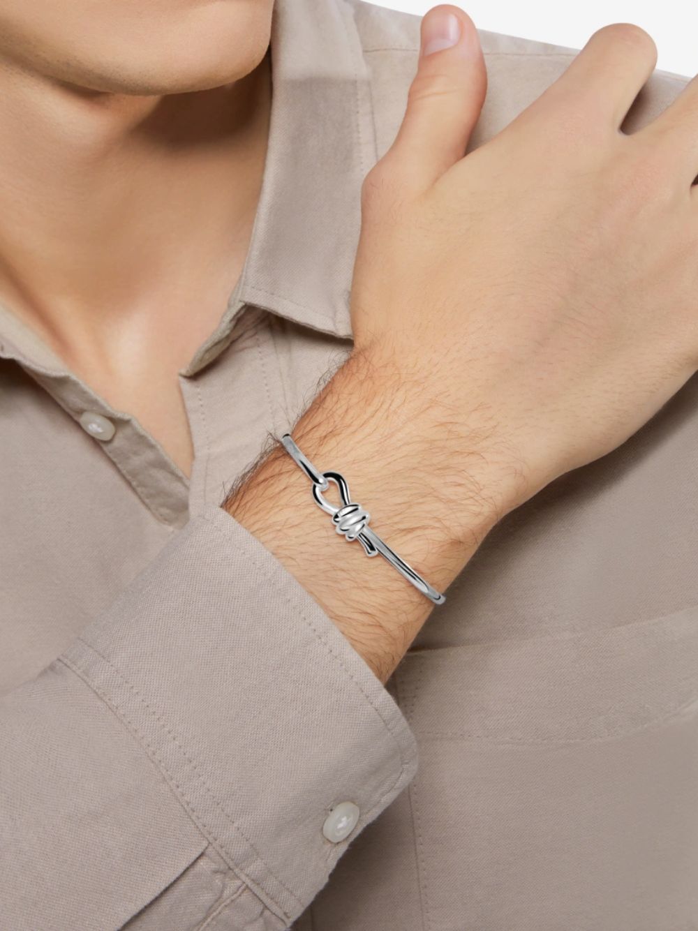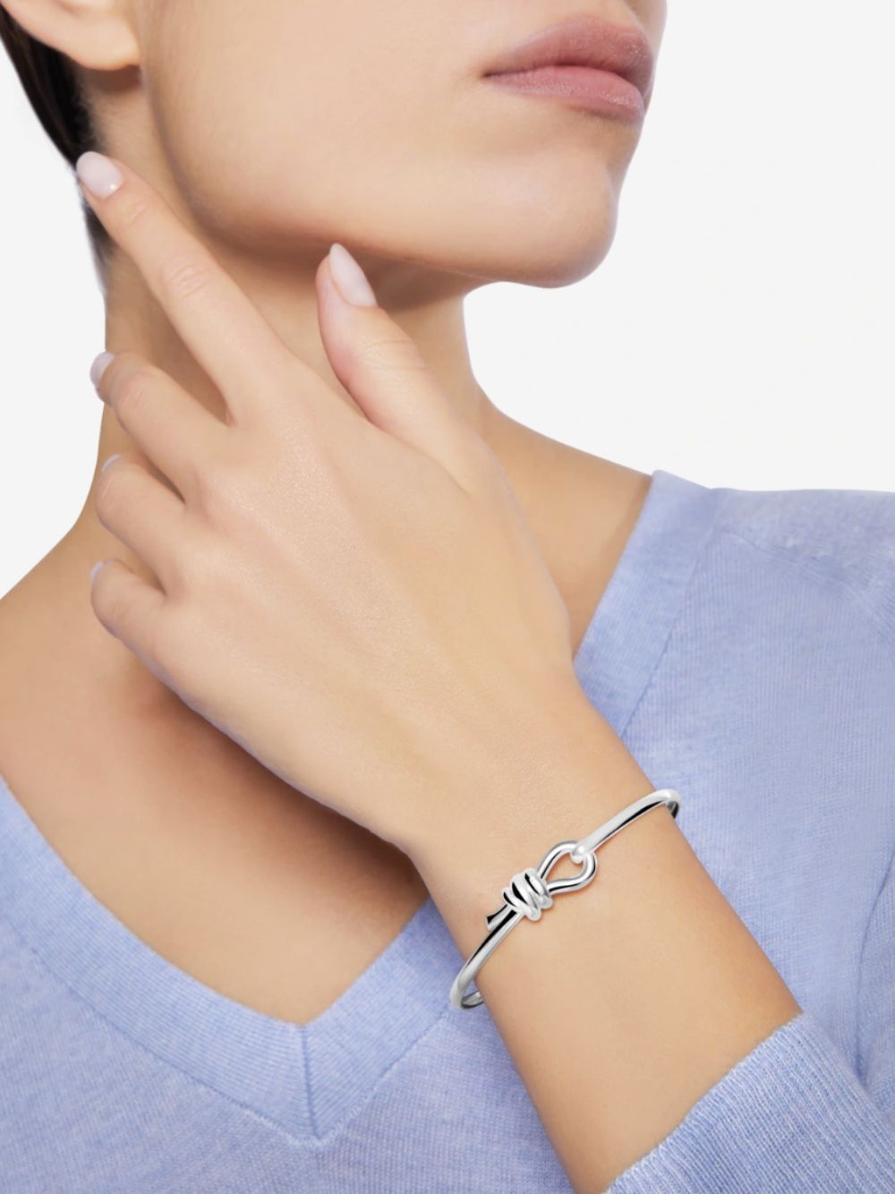 Bracciale bangle Nodo in argento 925, Ref. DBC4013_KNOT0_000AG. Un gioiello che celebra i legami eterni e l’inclusività.