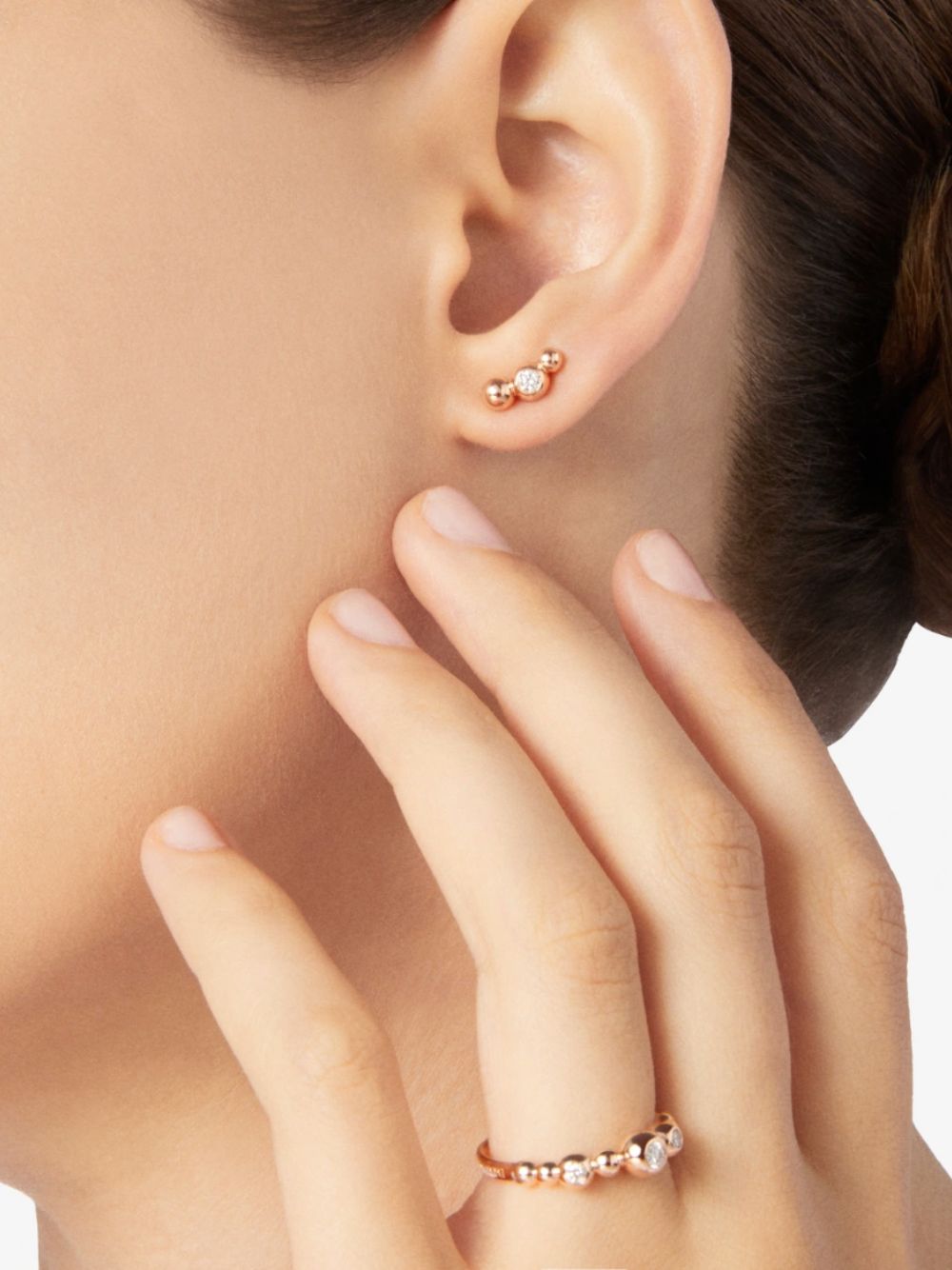 Orecchino Bollicine in oro rosa 9K con 1 diamante bianco (ct 0.06). Mezzo paio.