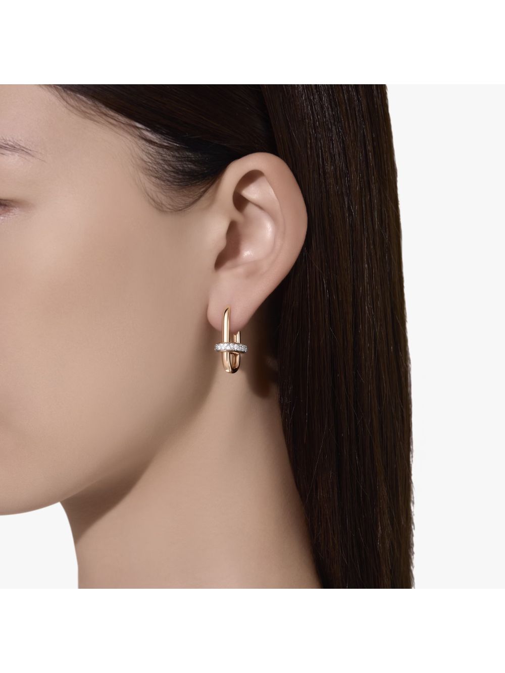 Scopri il fascino di Iconica – dove il design milanese incontra l`eleganza contemporanea, e ogni gioiello diventa simbolo di empowerment. Le creazioni rendono omaggio alla maestria artigianale di Pomellato, definendo il carattere distintivo della collezione. Questi orecchini trasformano la maglia classica in gioiello contemporaneo, realizzati in oro rosa con diamanti bianchi. Ogni orecchino alterna una maglia luminosa di diamanti – nel caratteristico pavé irregolare Pomellato su oro rosa rodiato bianco – a una in oro rosa lucido. Versatili e preziosi, portano un tocco di luce sofisticata dal mattino alla sera. Il design essenziale li rende perfetti per chi ama uno stile personale e deciso.