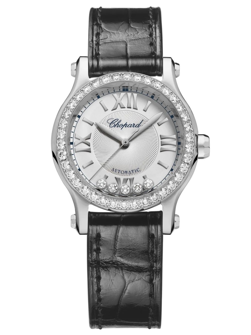 La collezione Happy Sport di Chopard, lanciata nel 1993, ha introdotto l`innovativa combinazione di acciaio e diamanti. Le pietre preziose giocose che danzano tra due vetri zaffiro sono diventate un simbolo di creatività e audacia. Chopard ha sviluppato un movimento meccanico a carica automatica appositamente per i modelli femminili Happy Sport da 30 mm, dimostrando la sua eccellenza orologiera.