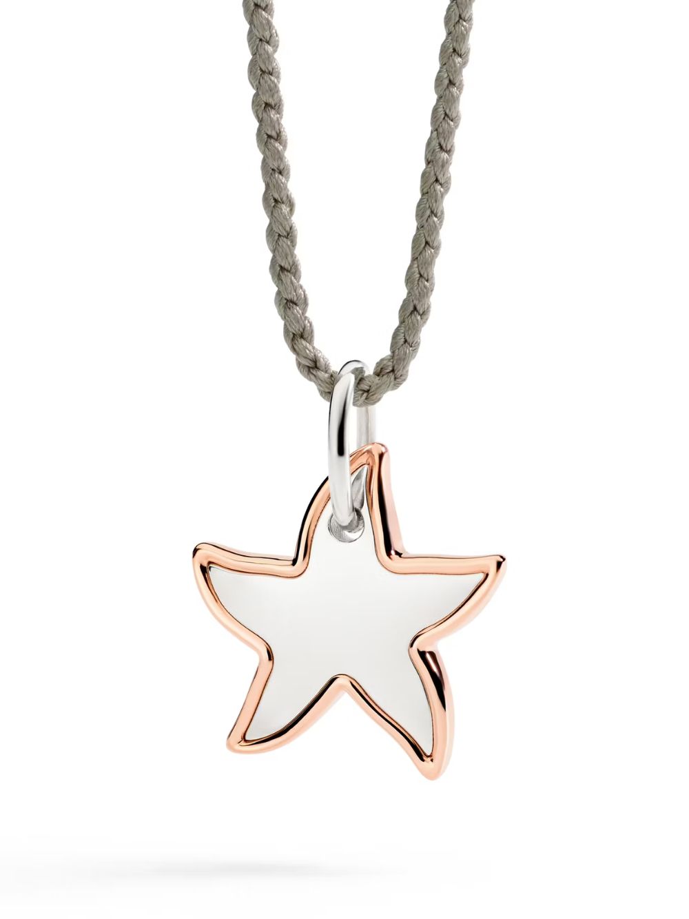 Ciondolo XL Stellina in argento 925 e dettaglio profilo in oro rosa 9K. Cordino in seta torchon incluso.