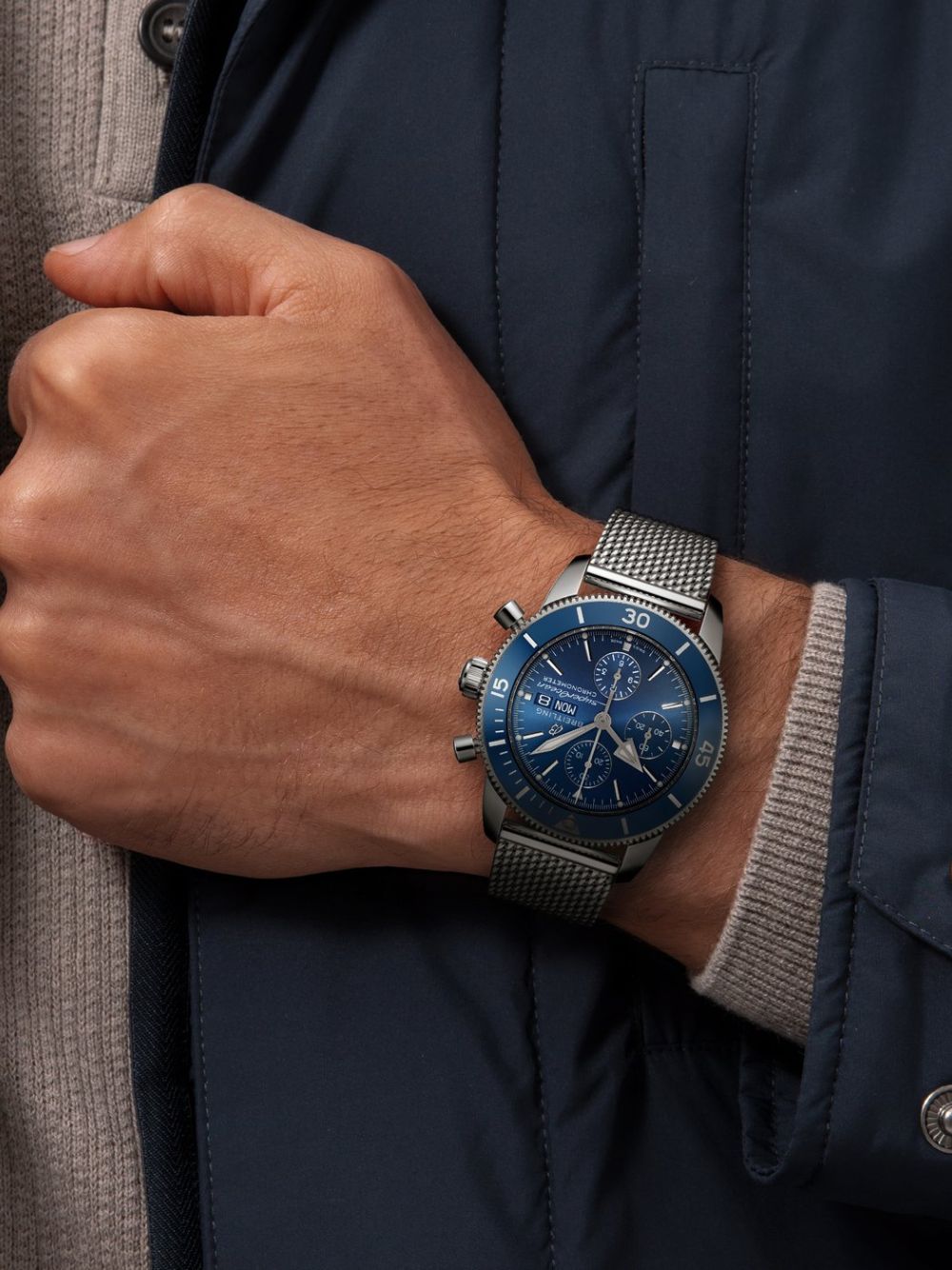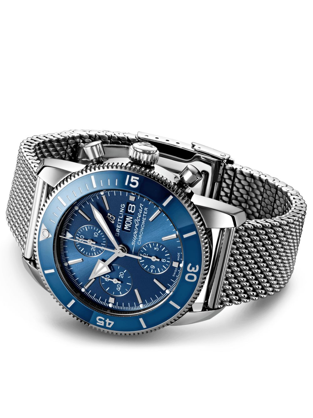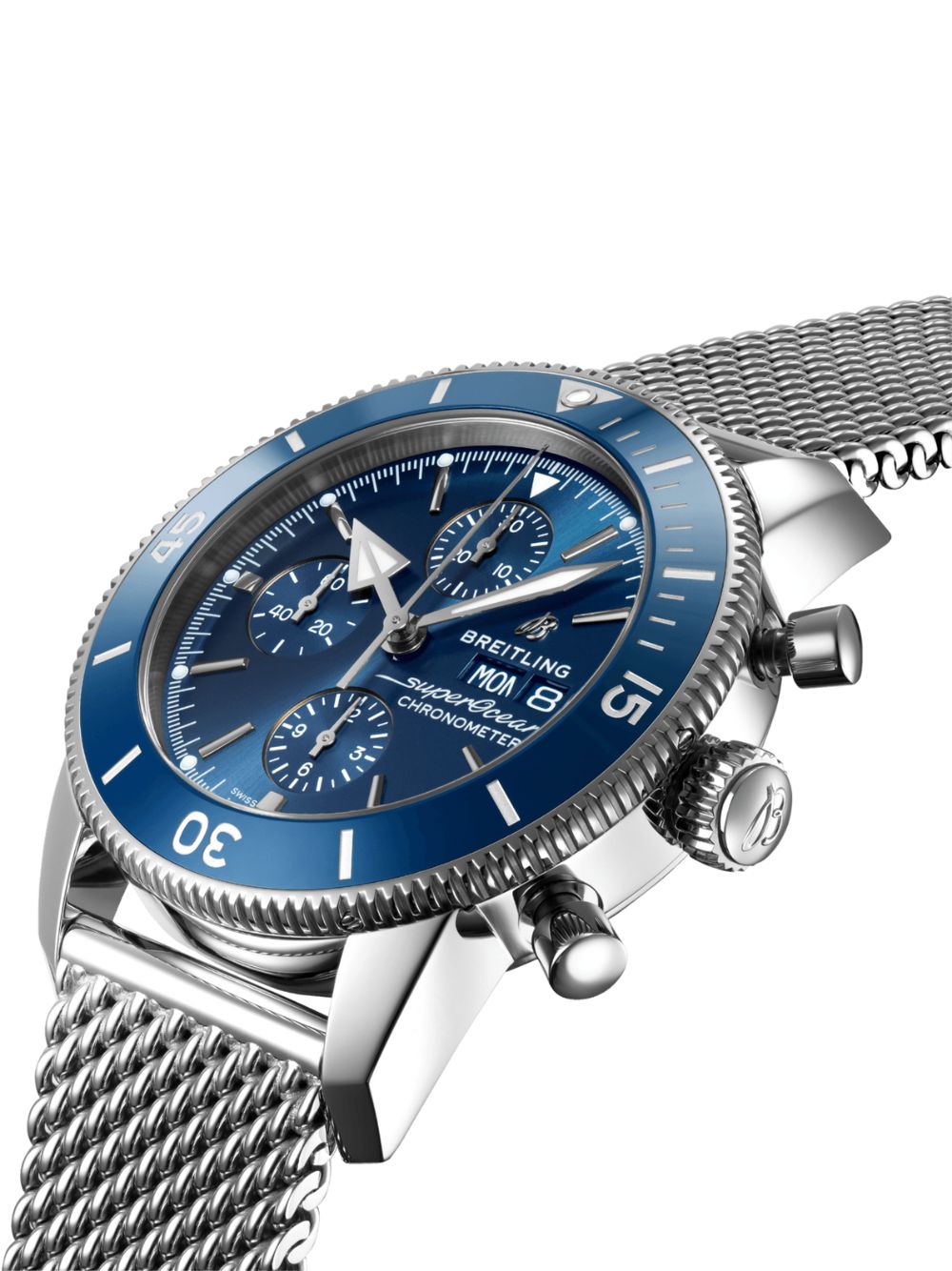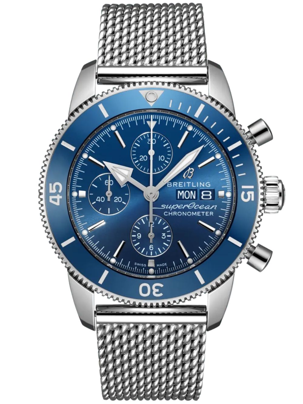 Ispirato al Superocean degli anni ’50, il Superocean Heritage unisce design iconico e modernità. Sportivo ed elegante, è caratterizzato da lancette triangolari e una lunetta in ceramica lucida. Disponibile in acciaio inossidabile o oro rosso 18 carati, il Superocean Heritage Chronograph 44 offre quadranti colorati. Con bracciale a maglie o cinturino in caucciù, è alimentato dal Calibro Breitling 13, un cronometro certificato COSC.