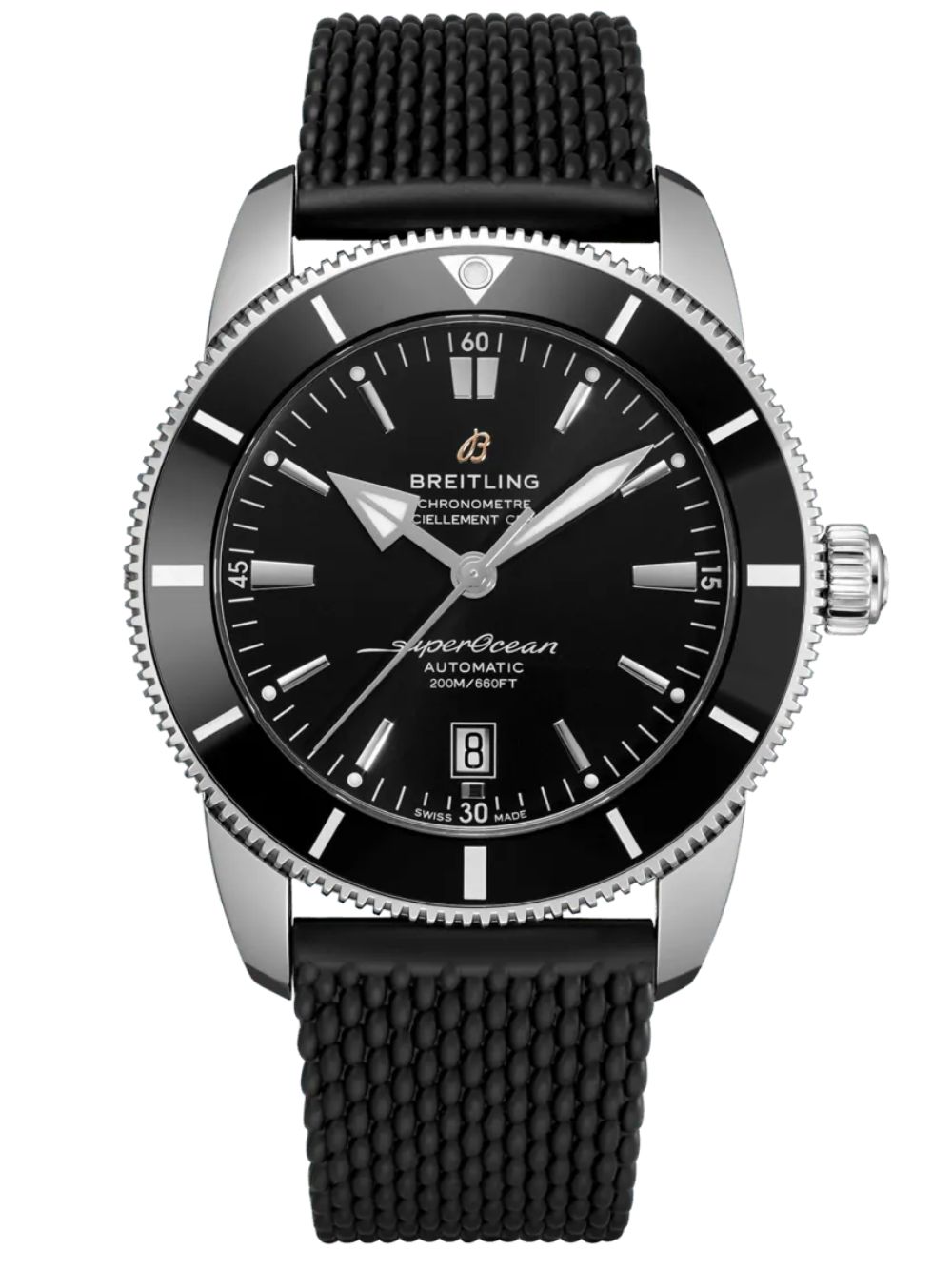Esplora la potenza del Breitling Superocean Heritage II B20 Automatic 46. Questo iconico segnatempo combina il meglio della tradizione subacquea Breitling con un design moderno. Dotato di un movimento automatico B20, certificato COSC, e una cassa in acciaio inossidabile da 46 mm, è perfetto per affrontare le profondità marine. Il quadrante nero e il cinturino in caucciù donano un look audace e sofisticato, mentre la resistenza all`acqua fino a 200 metri lo rende il compagno ideale per ogni avventura subacquea.