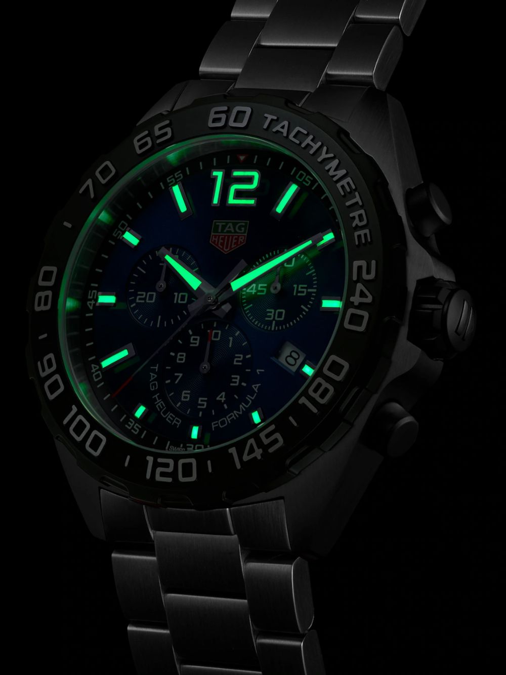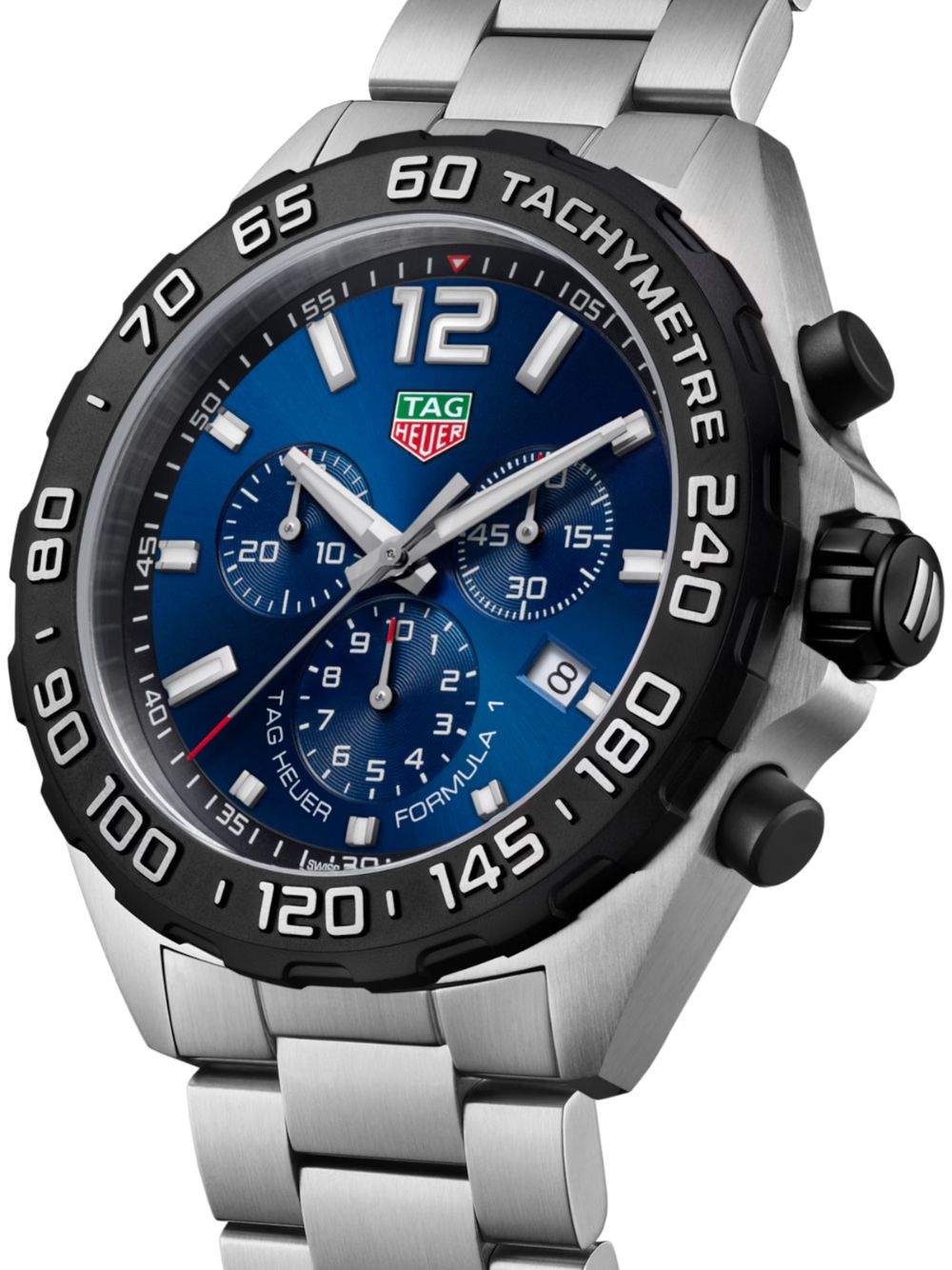 Perfetto connubio tra stile e prestazioni, il cronografo TAG Heuer Formula 1 affronta ogni sfida. Con un audace quadrante spazzolato effetto soleil blu e un elegante bracciale in acciaio, questo orologio da 43 mm reinterpreta un`icona delle corse in chiave moderna. Quadrante blu spazzolato soleil, bracciale in acciaio.