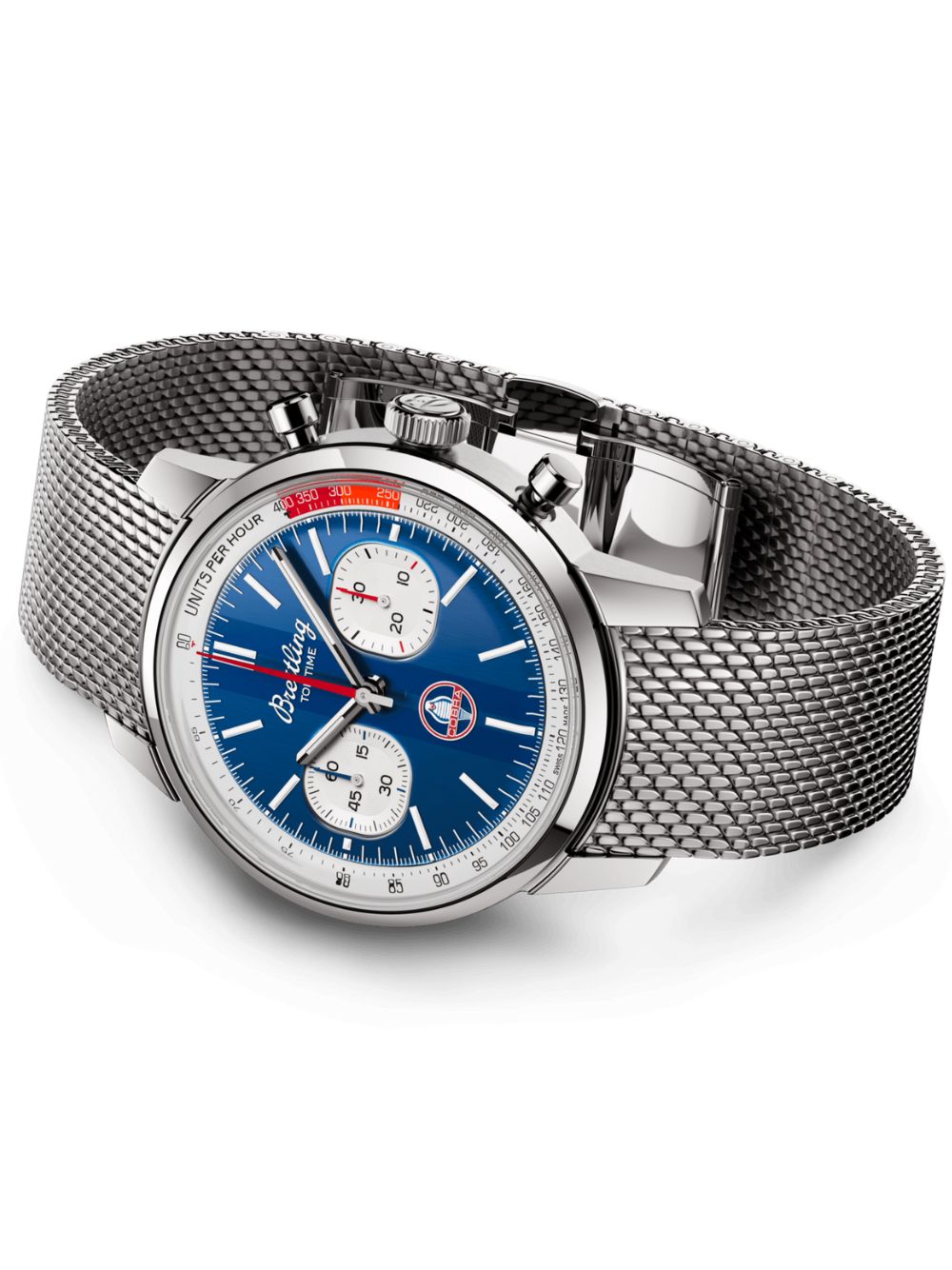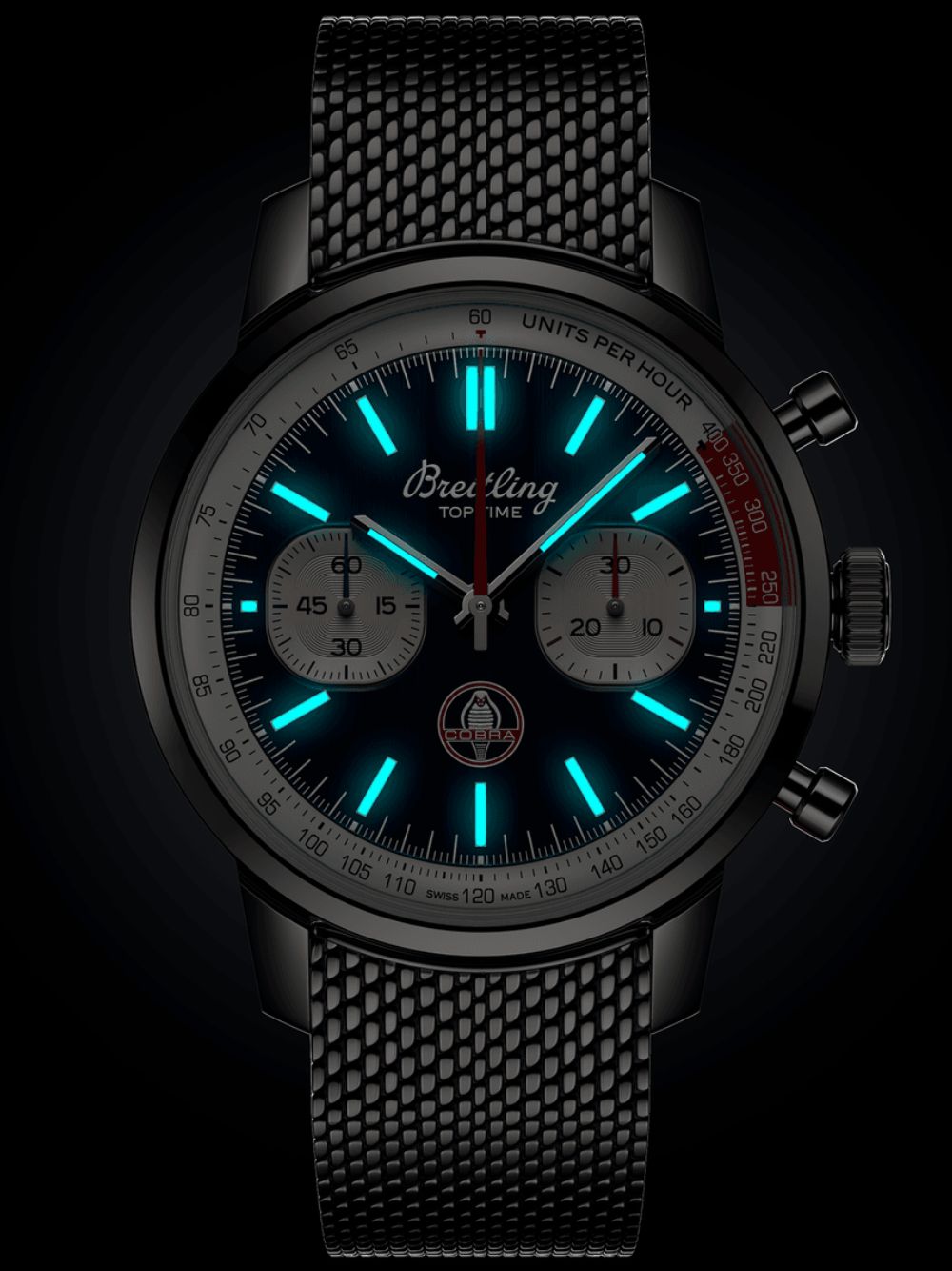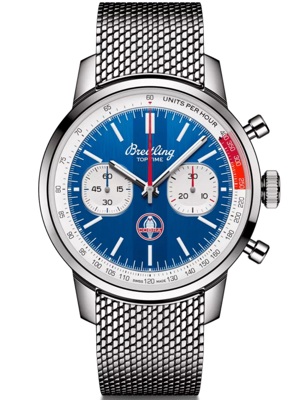 Negli anni `60, Willy Breitling ha creato il cronografo Top Time, catturando lo spirito dell`epoca di sperimentazione e velocità. Questa tradizione continua con collaborazioni di Breitling con iconici marchi automobilistici, come il Top Time B01 Shelby Cobra ispirato alla leggendaria Cobra di Carroll Shelby. L`orologio riflette i colori e l`emblema dell`auto classica, con un cinturino in pelle traforata stile racing e contatori squircle vintage sul quadrante. Al suo interno, è equipaggiato con il potente movimento Breitling 01. Un omaggio alla velocità e al design classico, il Top Time B01 Shelby Cobra unisce stile automobilistico e orologeria di alta qualità.