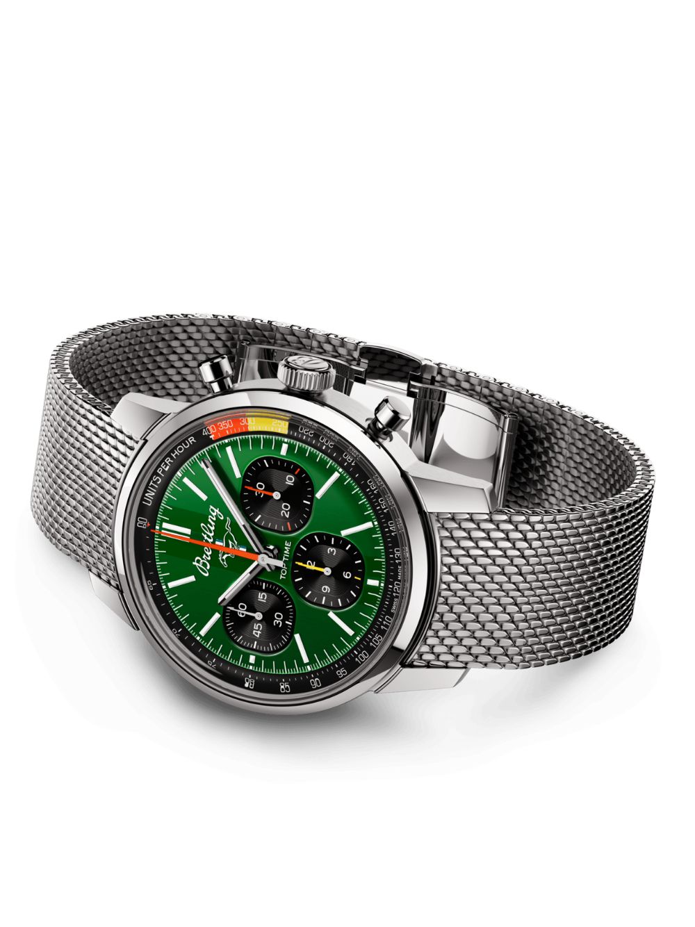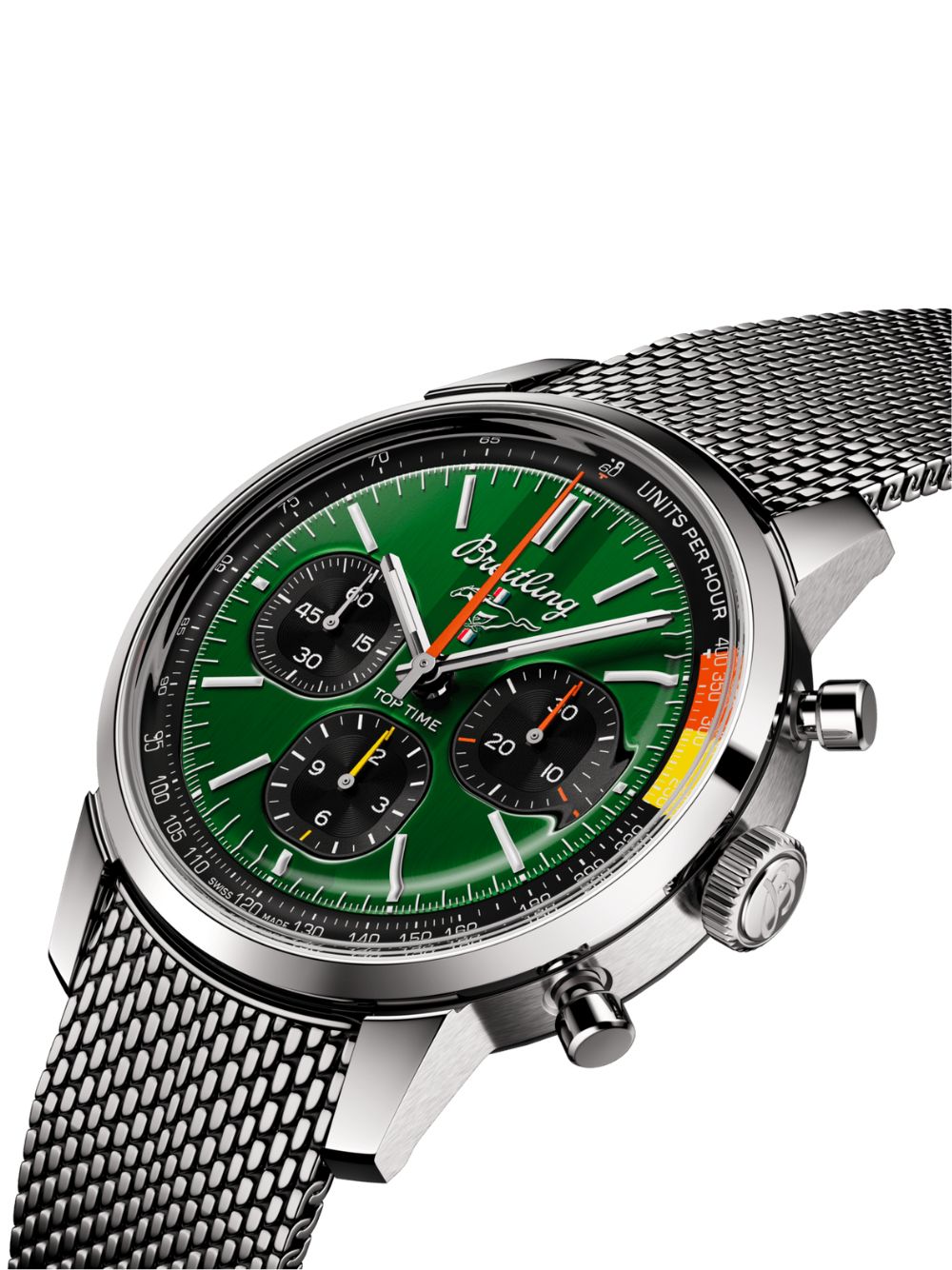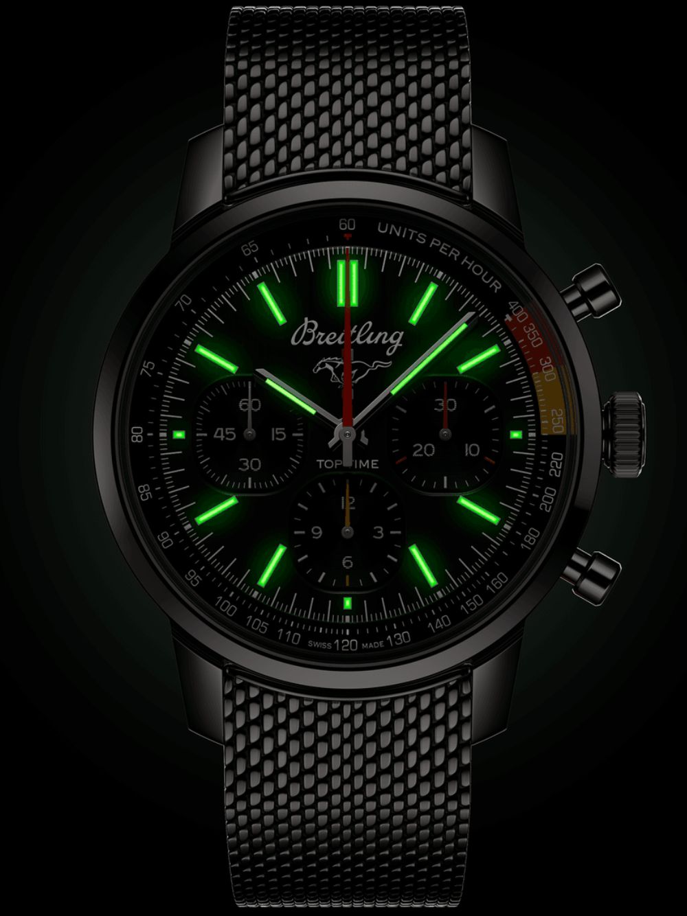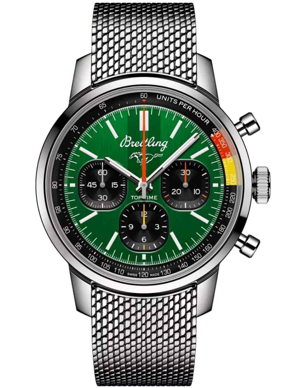 Negli anni `60, Willy Breitling creò il cronografo Top Time per catturare lo spirito di sperimentazione e velocità del periodo. Il Top Time B01 Ford Mustang è ispirato alla leggendaria auto americana, con colori e emblema distintivi sul quadrante e un cinturino in pelle traforata stile racing. All`interno, batte il movimento Breitling 01, unisce stile e prestazioni eccezionali.